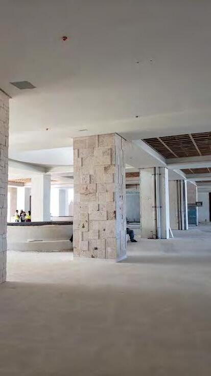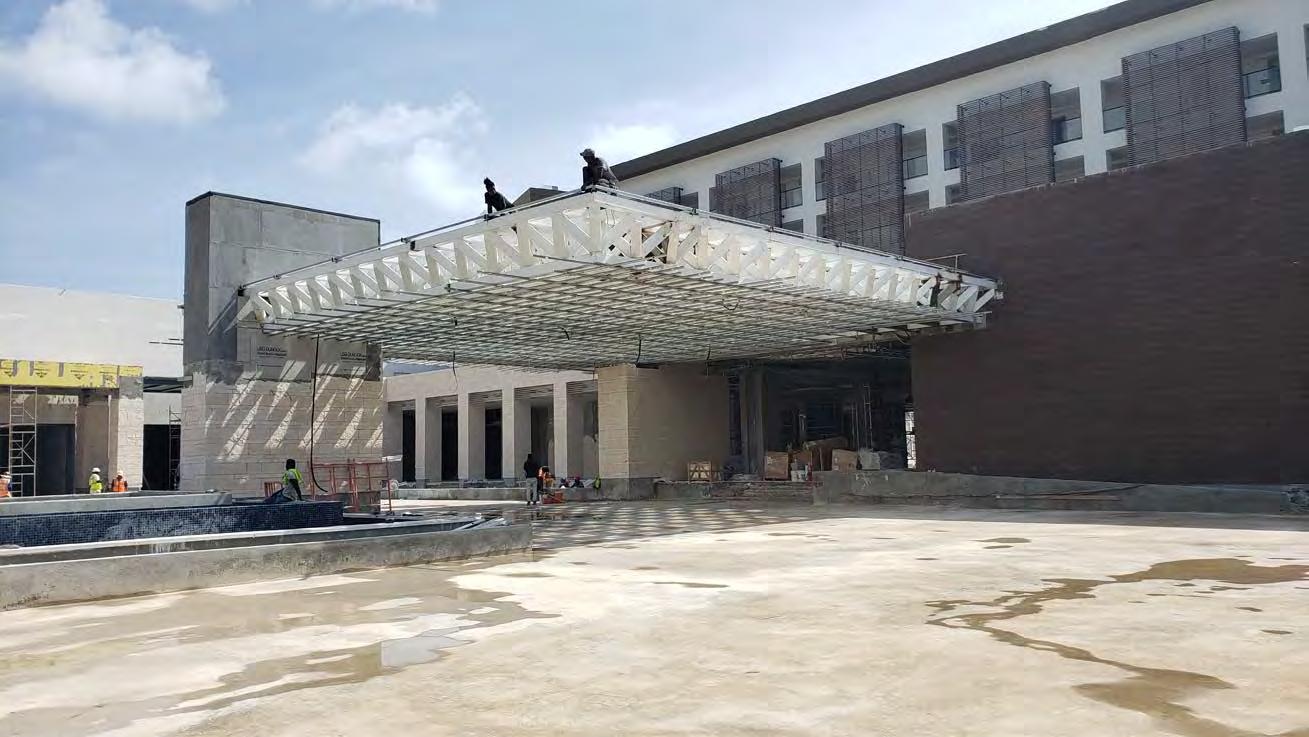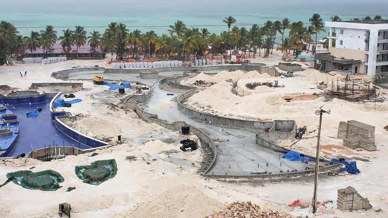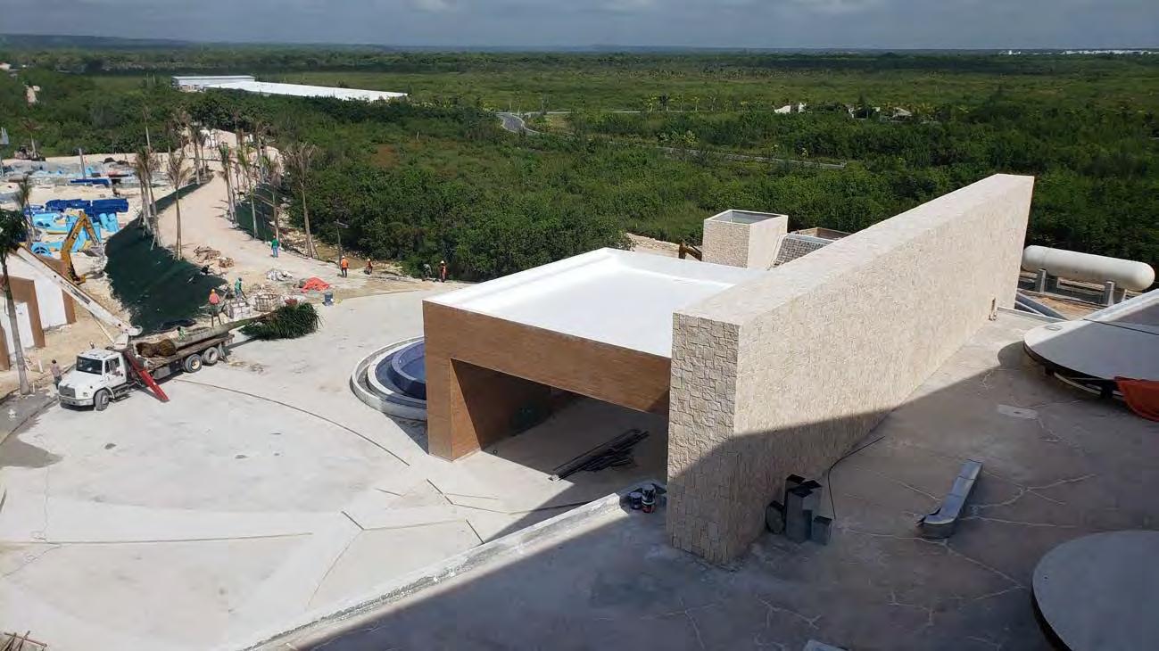 El Parque Acuático, al igual que el edificios del Kids and Teens club, forman parte del programa operativo del Hyatt Ziva. Al ser un hotel para toda la familia, la operación de cide colocar este espacio en conjunto y que a su vez, fuese ocupado por personal ajeno a la propiedad, ósea, para todo publico. A diferencia d los otros edificios, estas estruc turas son sencillas, excavaciones puntuales para realizar zapatas aisladas y levantar co lumnas, no se realizaron pilotes ni perforacio nes especiales. El estudio de suelos para la ubicación del Parque Acuático fue favorable, ya que el subsuelo de esta zona está confor mado por piedra caliza o caliche y muy poca arena. Para el edificio del teen and Kids Club, el diseño arquitectónico se baso en un abani co, dividido por muros estructurales que a su vez permitieron la partición de los espacios en el interior. Este criterio arquitectónico si gue la misma forma que la taquilla y baños del parque acuático, creando un ritmo en una zona abierta y sin edificios altos. Estos espa cios cuentan con sus áreas de servicio para operaciones y cuarto de maquinas. Al igual que el SPA, se entregaron formalmente en Enero 2020.