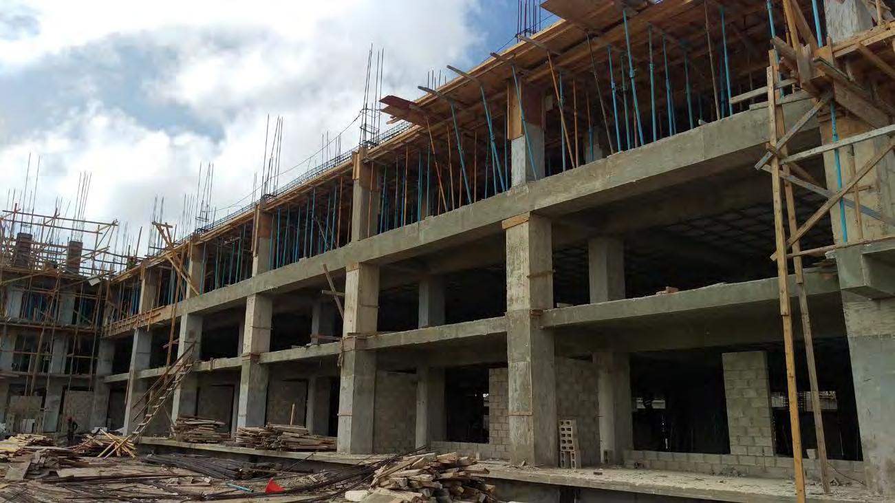 En este apartado se mostrarán los procesos constructivos de cada edificio del proyecto. Este proceso constructivo fue de la mano con el concurso de licitaciones. Los primeros edificios en entrar a licitación fueron los edificios 2, 3, 5 y 6, por lo que también, fueron los primeros en comenzar el desplante de las columnas y pórticos estructurales. La empresa ganadora de este proceso constructivo en la primera ronda fue SINERCON. Cada edificio cuenta con sistemas estructurales parecidos, pilotes de 16 a 27 metros de profundidad, zapatas armadas con cabezales compuestos y a partir de esto, columnas y pórticos estructurales con vigas de concreto armado. El proceso constructivo de los edificios 2, 3, 5 y 6 se inicia entre Marzo 2018 y Abril 2018. Posterior a este concurso, se inició el proceso de licitación de los edificios 1, 4, 7 y 8 entre Junio 2108 y Julio 2018, resultando como empresa ganadora SINERCON. El desarrollo estructural se inicia con una diferencia de aproximadamente dos meses entre los edificios 2, 3, 5 y 6. El sistema estructural de todos los edificios responde a una necesidad sísmica de la zona, que son las juntas constructivas. Estas juntas se determinaron en relación al peso de cada bloque, todos los edificios cuentan con juntas constructivas. Los niveles constructivos van de 4 niveles a 8 niveles estructurales, cada Bloque, cuenta con un sistema estructural calculado y especifico de acuerdo a la posición que se tiene en el terreno, cada bloque también cuenta con diferentes sistemas de cabezales armados, ya que el peso no es el mismo entre los cuatro bloques. Todas las losas estructurales tienen el mismo sistema de armado constructivo, varillas de acero en dos sentidos, con calzos en puntos específicos, malla electrosoldada, casetones de foam o unicel para aligerar el peso y vaciados de cemento.