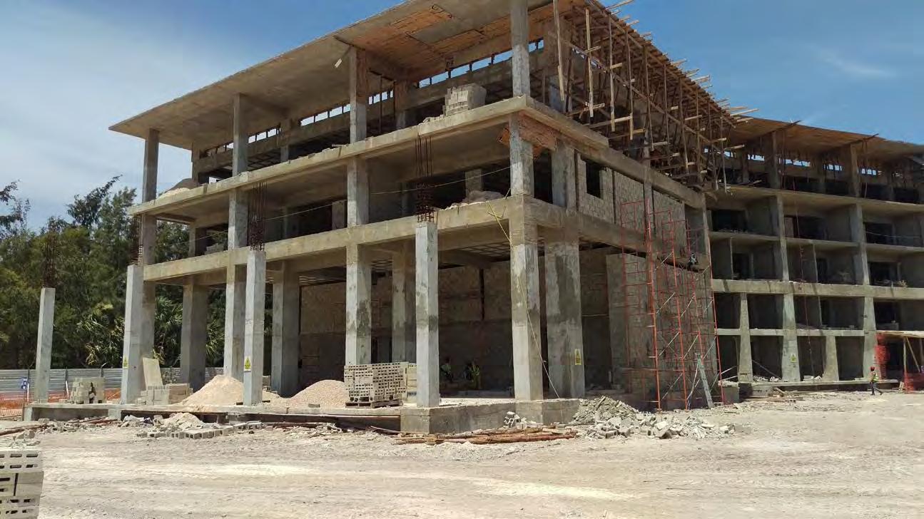 La división de esas fases también permitió al sistema estructural analizar las cargas activas y pasivas de los edificios, dando como resultado la separación de edificios por juntas constructivas, las cuales, determinaron el orden del proceso constructivo de los edificios que a continuación se presentan. El proceso constructivo inicia con los edificios 1, 3, 5 y 6, continua con los edificios 1, 4, 7 y 8 y culmina con los edificios satélite.