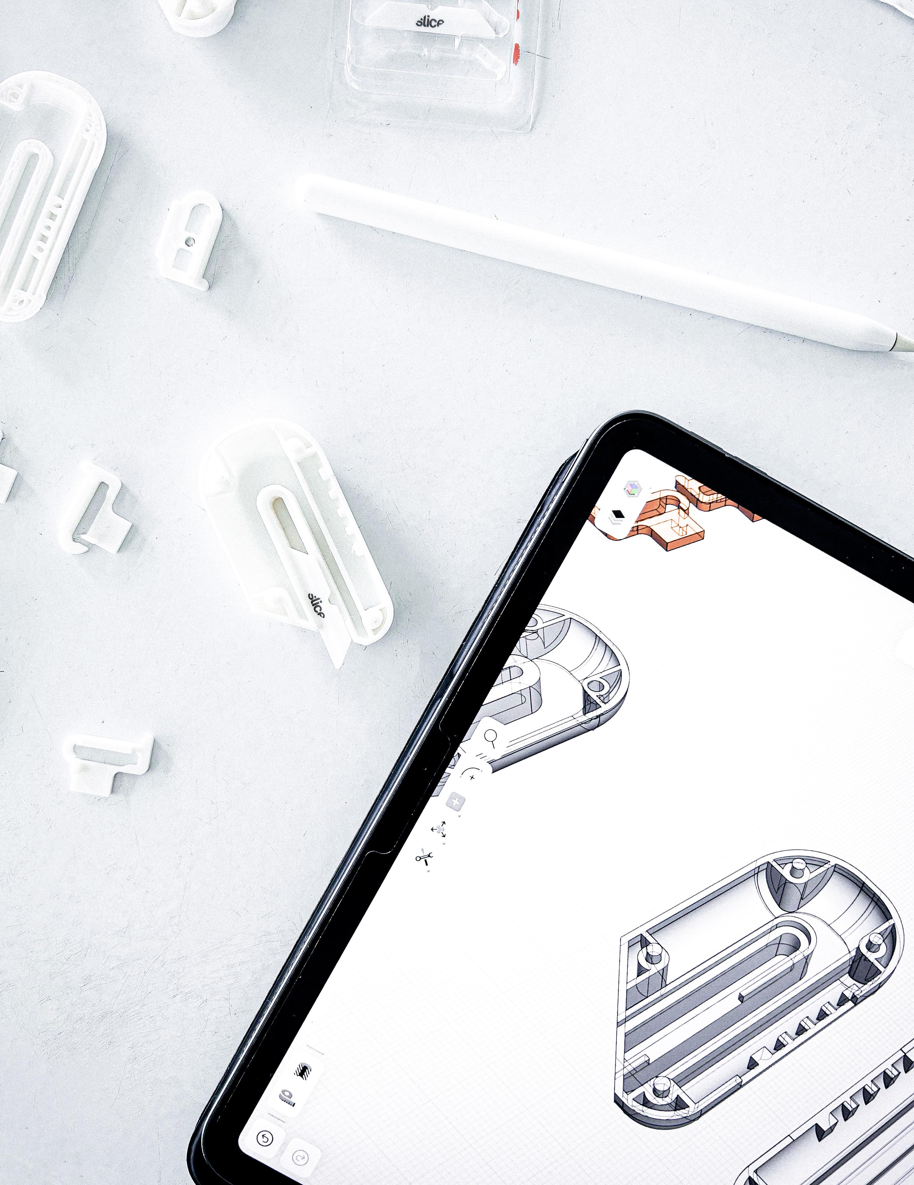 Esta fase incluyó la ideación de posibles mecanismos y la visualización de elementos visuales clave que reflejaran la identidad de la marca Slice, asegurando que el diseño cumpliera con su propósito funcional y se alineara estéticamente con la gama de productos ya existentes de la marca.
