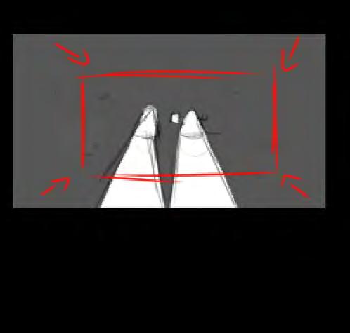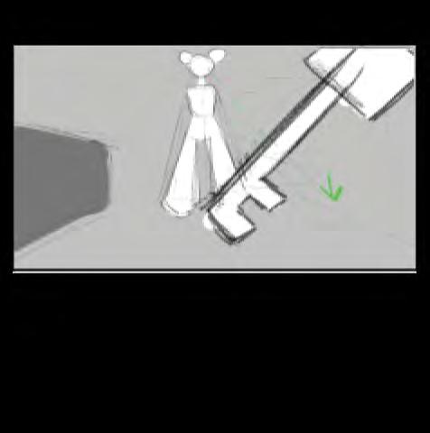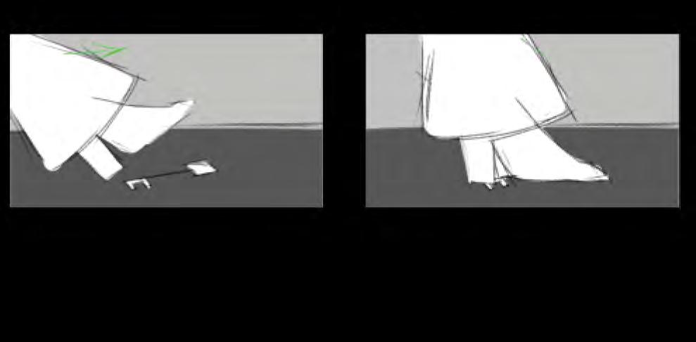 Al ser negada su petición por el científico de salir al exterior, AI logra ver como se le cae la llave al científico. El uso de la perspectiva pretende representar a la protagonista como un ser vulnerable, dándole menos peso visual en comparación con las llaves. Al ampliar las llaves, se atraerá la atención del espectador hacia este objeto, entendiendo que jugará un papel crucial en la historia.