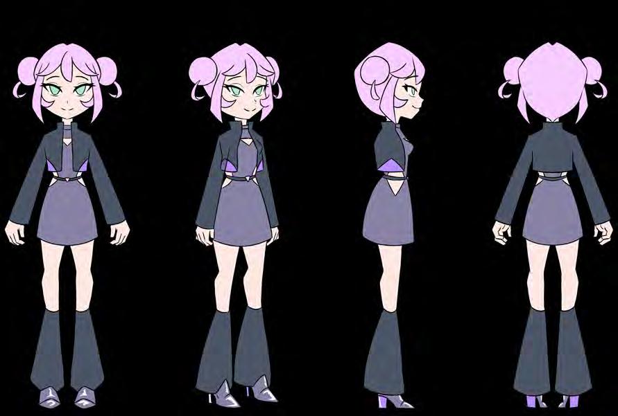Se aplicó el concepto de proporción en las alturas de los personajes, en el caso de la protagonista, tiene una proporción de 4 cabezas y ¾ de altura.