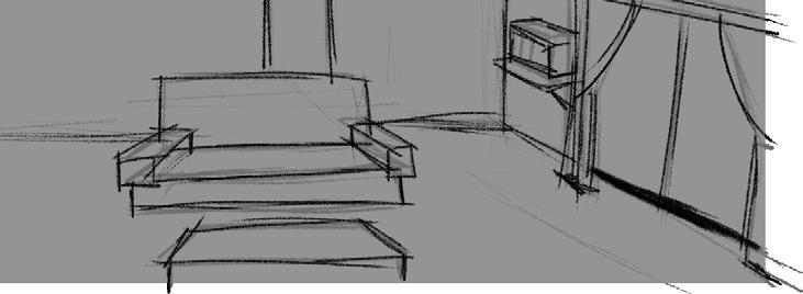 Se consideró la inclusión de elementos convencionales, tales como un conjunto de mobiliario, una televisión y una ventana. Estos últimos elementos son cruciales para la historia, ya que representan el único vínculo de la protagonista con el mundo exterior.
