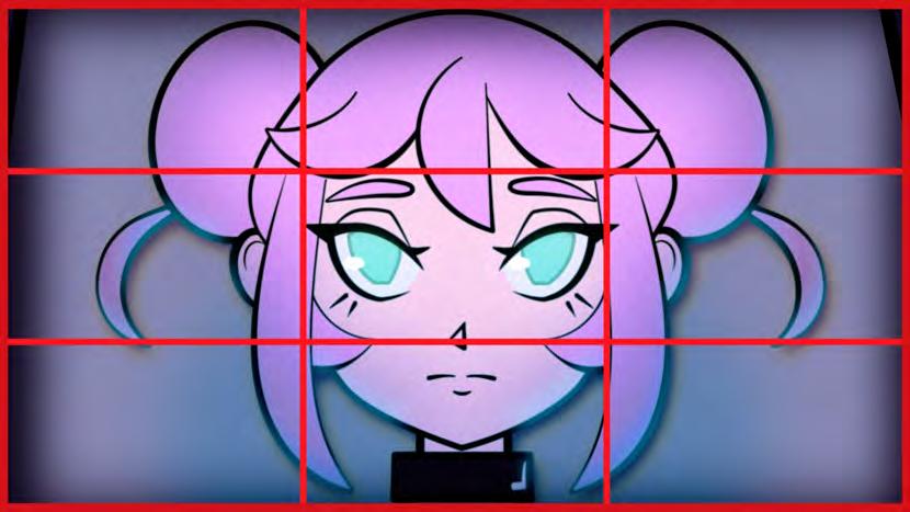 La composición de tercios es el encuadre más utilizado a lo largo del teaser, en el ejemplo se muestra como el centro de interés es en la zona de los ojos, para que el espectador se enfoque en estos.