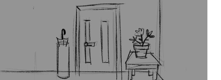 Para destacar el picaporte se utilizó un color cálido, a diferencia del resto de la escena que son colores fríos.