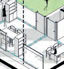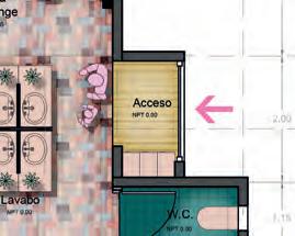 Como espacio privado e inclusivo se crea un módulo habitacional para personas con discapacidad temporal o permanente, estas habitaciones estan ubicadas cerca de las estancias y de fácil acceso a los talleres y espacios de atención, para que las personas con discapacidad tengan acceso a la mayor parte de los espacios comunes del refugio.
