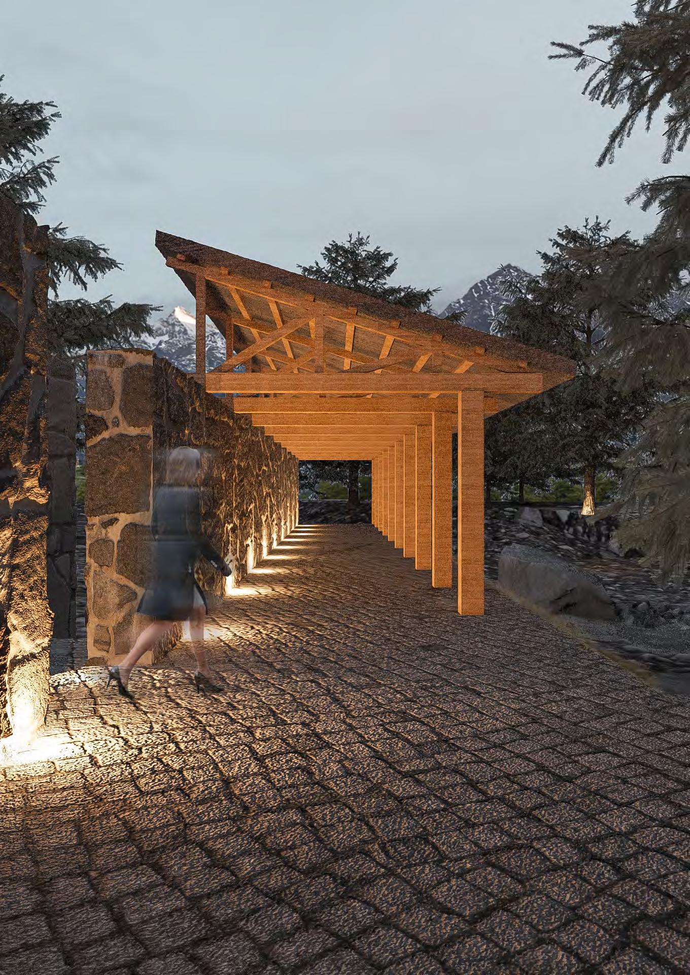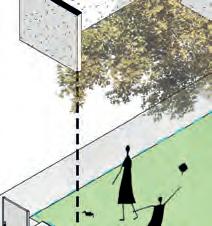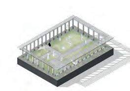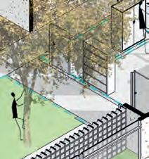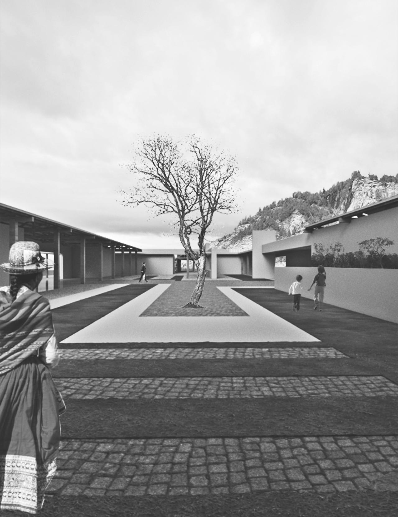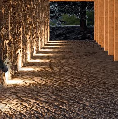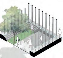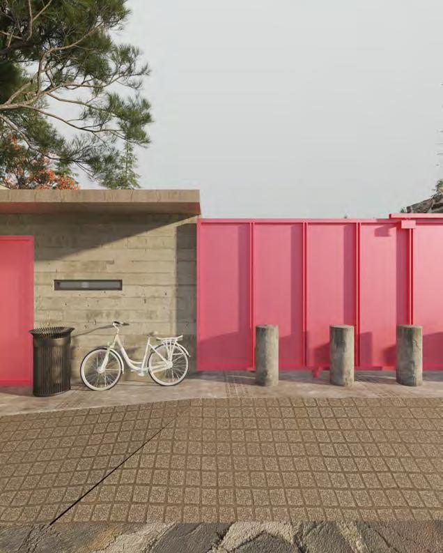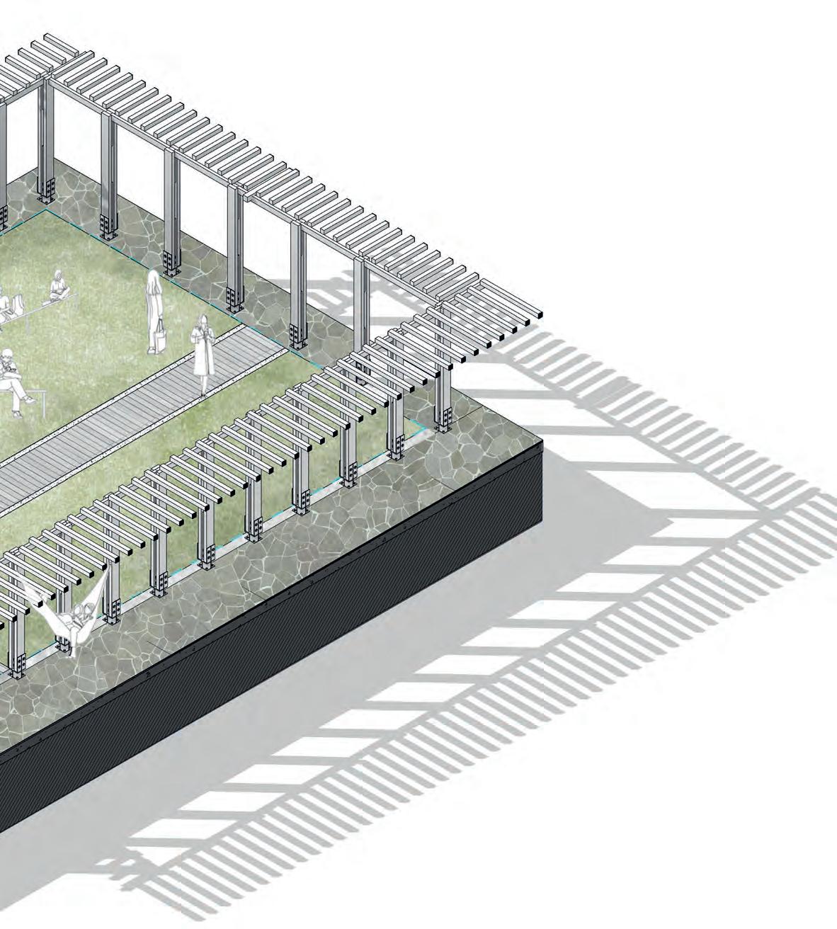 Espacio de memorial y respeto: se integran elementos verticales dentro de este patio, como cinsiferación de las pérdidad que la socidad ha tenido a causa de la violencia hacia la mujer.