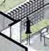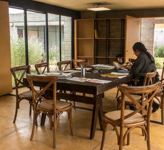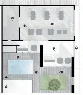 La distribución del comedor esta orientada y abierta la vista hacía el patio de contemplación, creando esa libertad de pensamiento que un área verde puede generarte, en el comedor se incluye un área de espectador o exterior en la que se genera un microambiente de naturaleza.