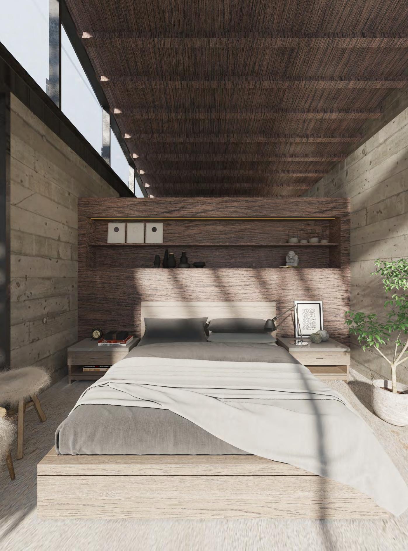 La intención de este módulo habitacional es que se pueda repetir cuantas veces sea necesario, cuenta con espacio tipo terraza para que los usuarios puedan tener un acercamiento con el exterior y darles esa libertad que a veces se pierde en el proceso.