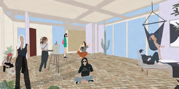 Impulsar el potencial de los adolescentes por medio de este espacio, en el que se cuenta con espacios para pintar, cantar, tocar instrumentos musicales, área recreativa, de lectura y convivencia, distribuido con áreas de guardado y lockers.