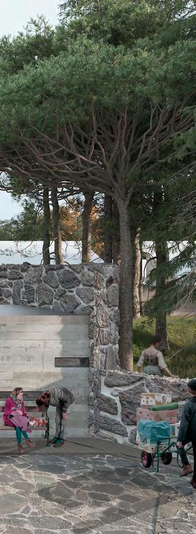El segundo estacionamiento es para los usuarios de carga y descarga de alimentos, este esta pensado en que las personas externas del refugio no puedan visualizar ni saber lo que sucede en el interior, teniendo solo la opción de entrar a la zona de despensa.