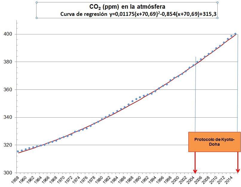 400+ ppm de CO2, pero la velocidad de aumento