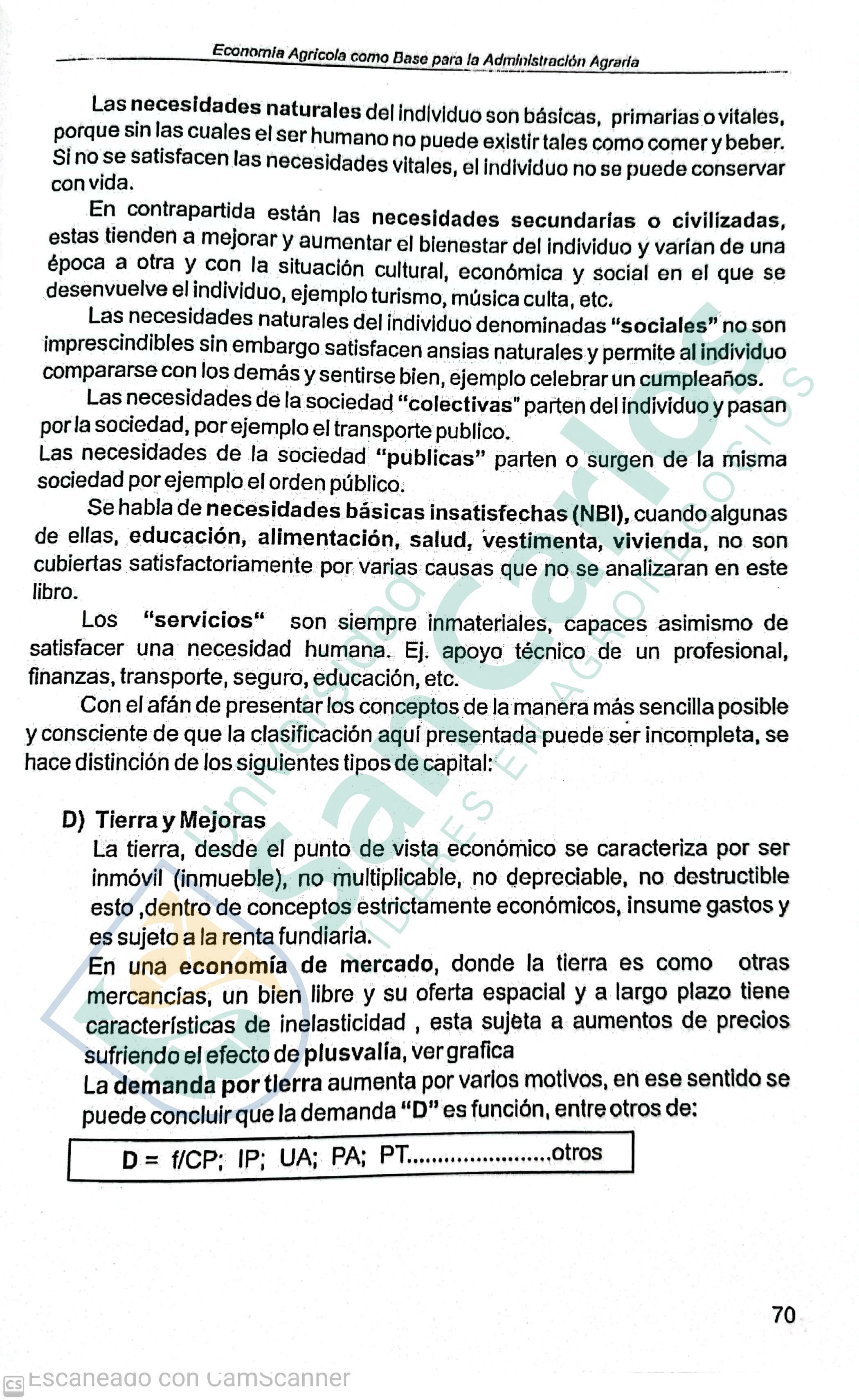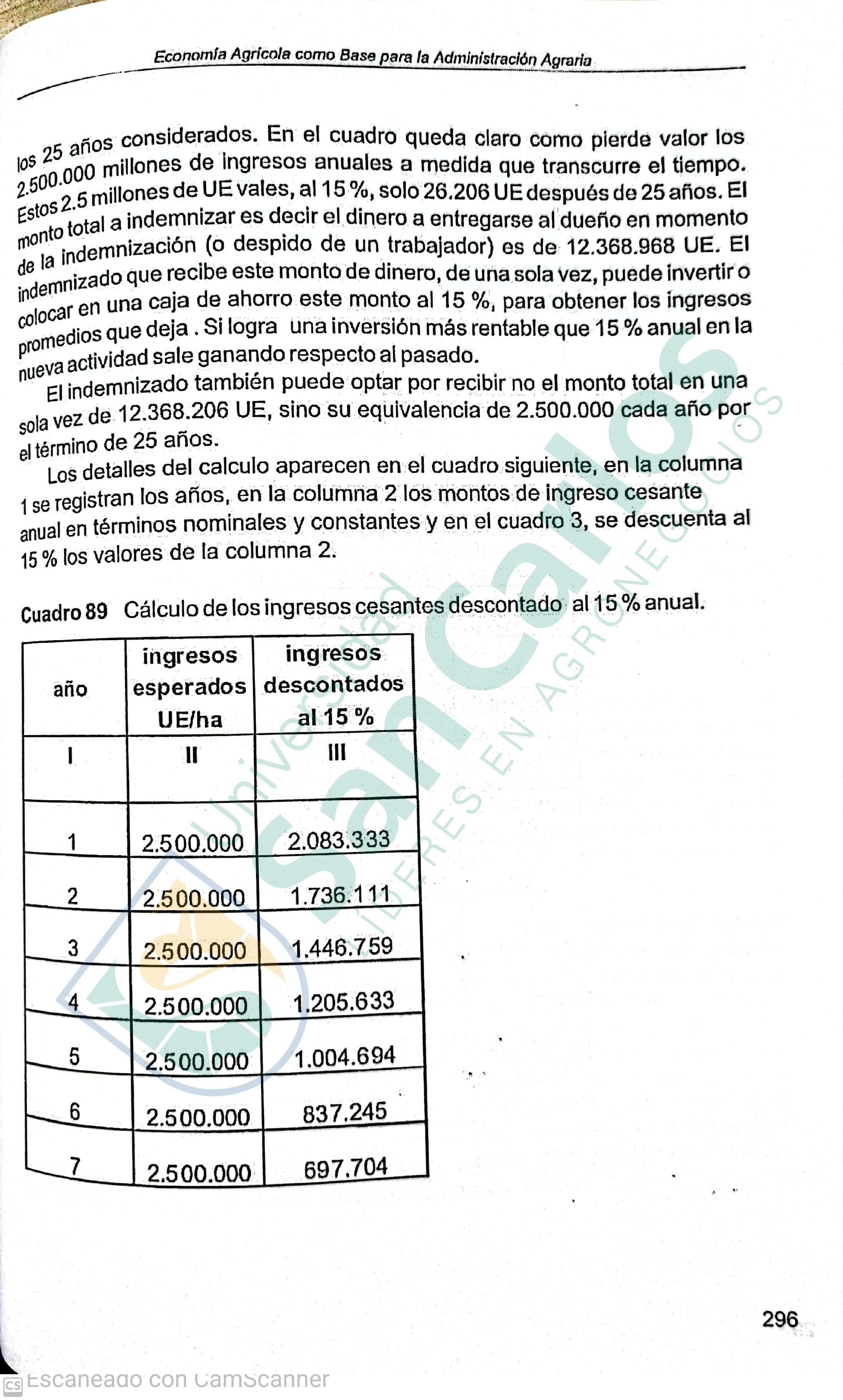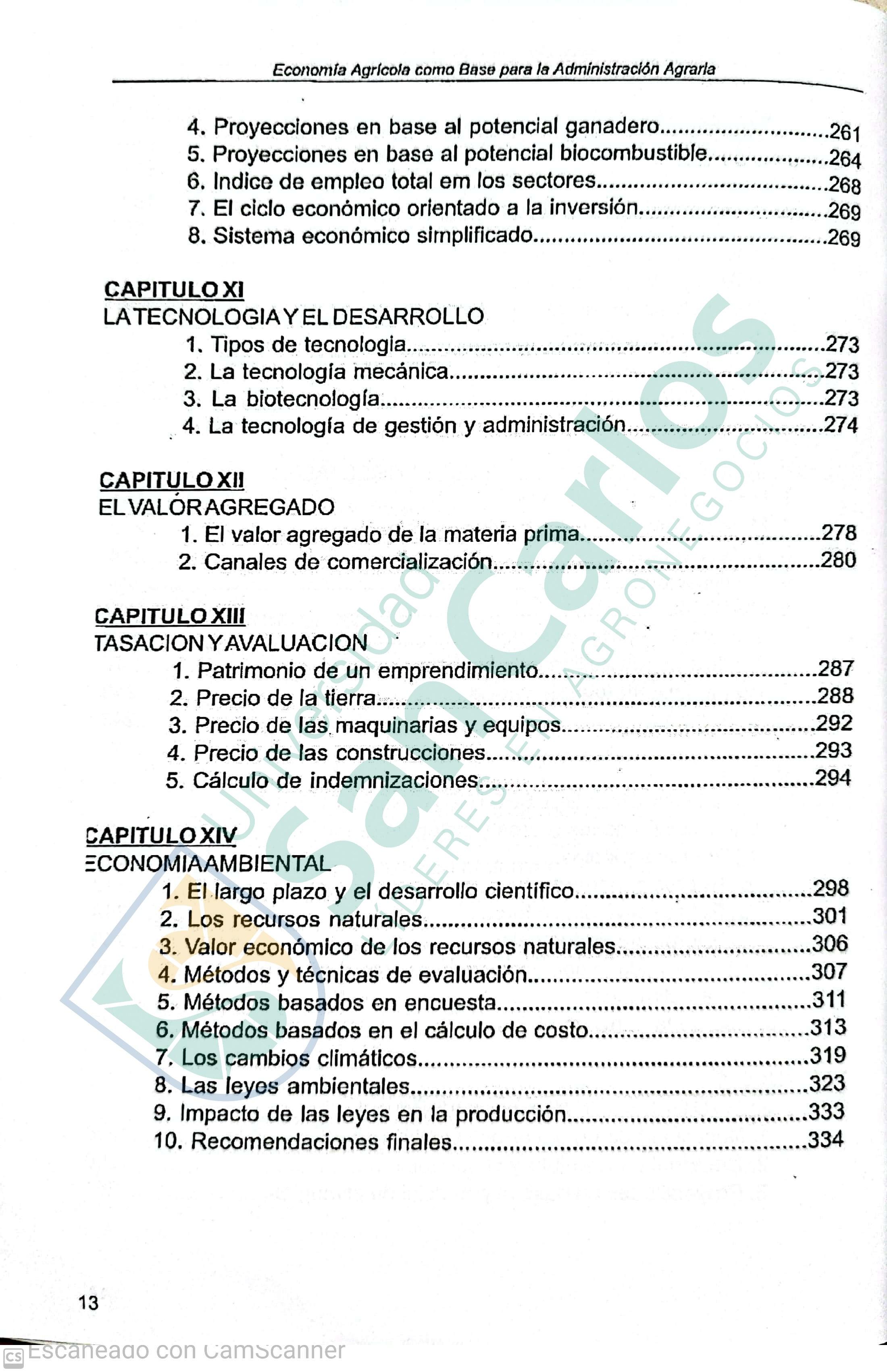 Prólogo: Este libro está dirigido en primer término a los estudiantes, de manera que ellos dispongan de material para lograr una buena base teórica con posibilidad de us aplicación directa a casos prácticos. No hay más práctico que una buena teoría. Además de destinar este libro a estudiantes de agronomía, economía, administración de empresas, ciencias ambientales, cooperativismo, estudiantes de planificación y de proyectos, constituye también un material de consulta para profesionales de las áreas mencionadas y a evaluadoras y tasadoras.
