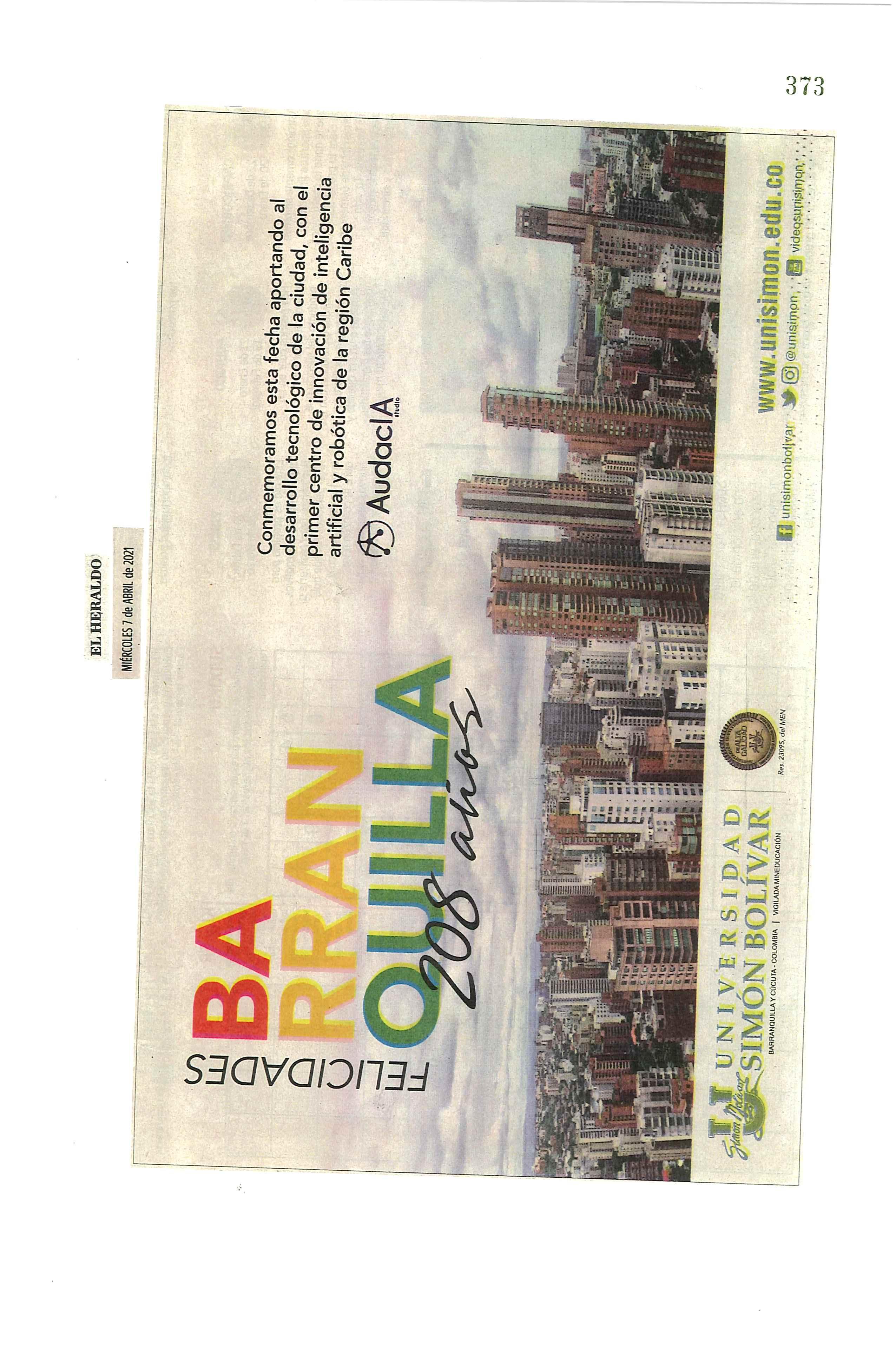 BARRANQUILLA, ABRIL 12 DE 2021 COMUNICACIONES EXTERNAS Y PRENSA