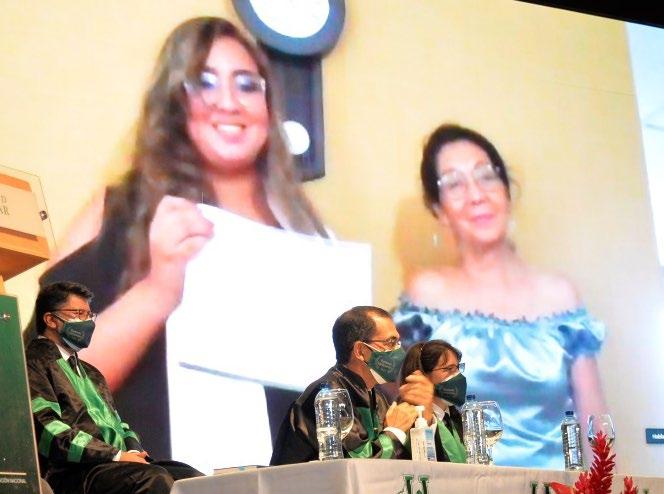 Quiero aprovechar este momento en que hago referencia a la pandemia para hacerle un homenaje a los estudiantes y a los seis profesores de esta Alma Mater que fallecieron por esta enfermedad Sin duda ha sido duro, nos ha dolido en el alma que ellos no nos continúen acompañando. Esta ha sido una enfermedad avasallante e imagino que cada uno de ustedes y sus familiares comparten esta triste realidad de haber perdido a alguien, o a un amigo, un primo, una tía, a un familiar muy cercano; la prueba ha sido muy dura para la humanidad, nos ha demostrado lo endeble que somos, nos ha vuelto a poner los pies sobre la tierra y nos ha permitido madurar A ellos, mi homenaje, y a través de este acto, el de los estudiantes y demás miembros de la Universidad.