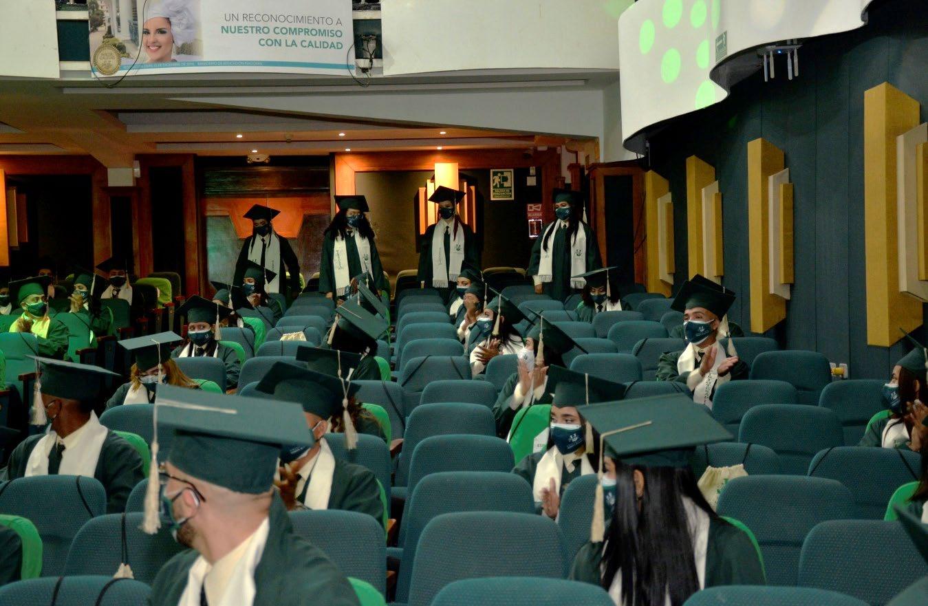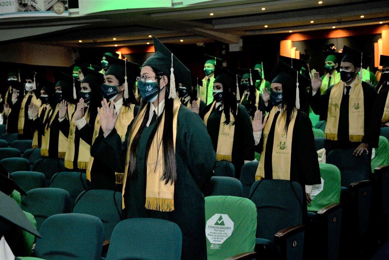 Como segundo atributo de este gran día está el hecho de que estamos aquí presencialmente, que vencimos el miedo, que vencimos las circunstancias que nos obliga esta pandemia y que estamos aquí a pesar del riesgo, sin embargo, pienso que no hay actividad humana que no suponga algún riesgo. Estamos diciéndole a la sociedad que a pesar de esta situación sanitaria tan grave, tan agreste, nos ponemos de pie y manifestamos que el mundo sigue por el camino más adecuado posible por el que se puede discurrir, que es el de una sociedad educada; y eso representan ustedes hoy, además de profesionales, son jóvenes educados y cultos, porque al lado de esas competencias profesionales, han tenido la oportunidad de vivir toda dimensión lo que es la academia y lo que es la cultura, ya sea con las experiencias del profesor o de sus compañeros o las vivencias que uno logra a través de la lectura en los libros.