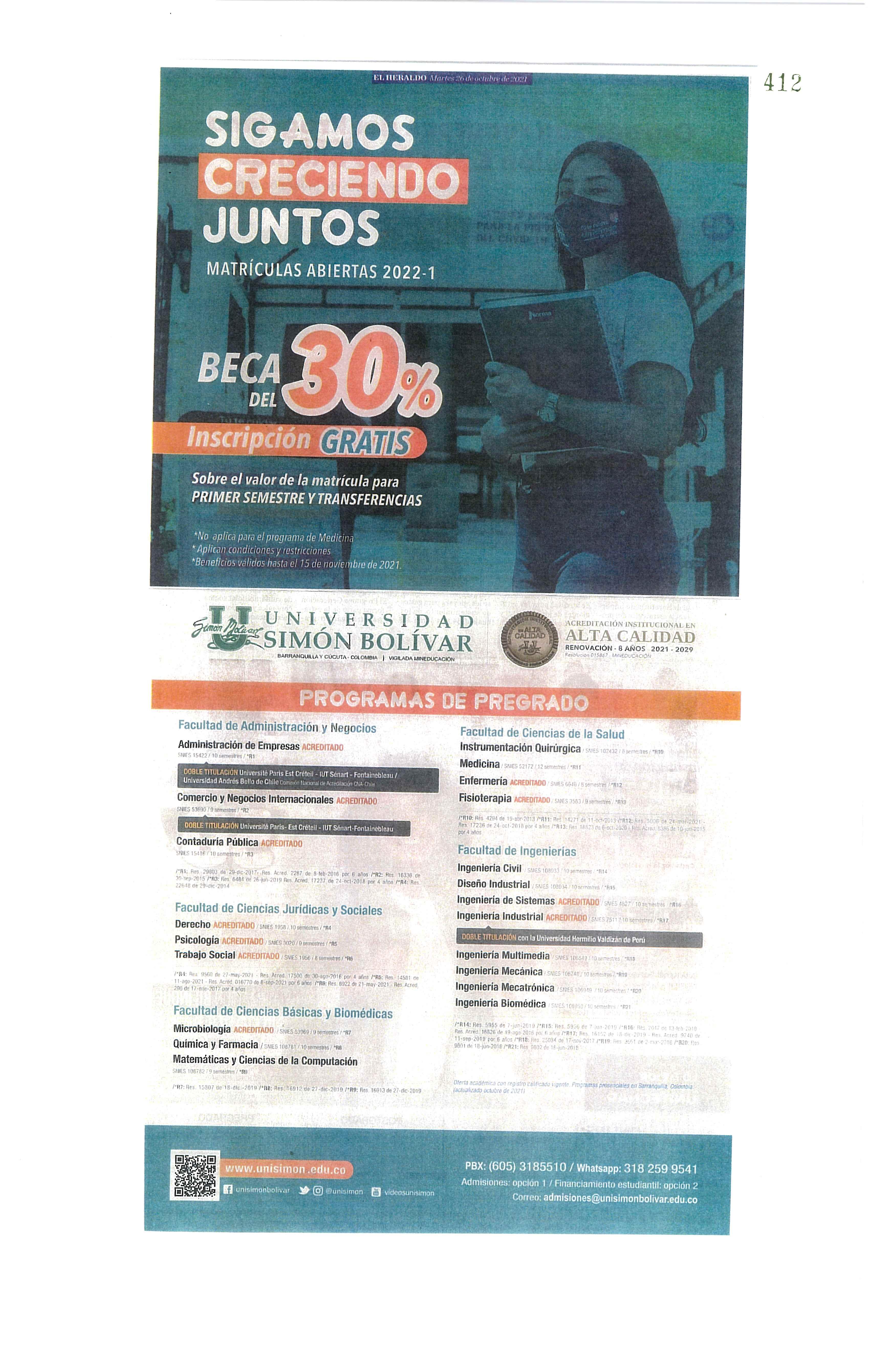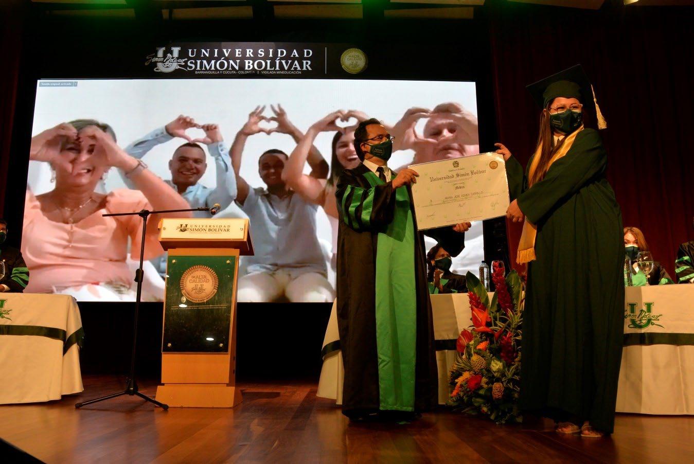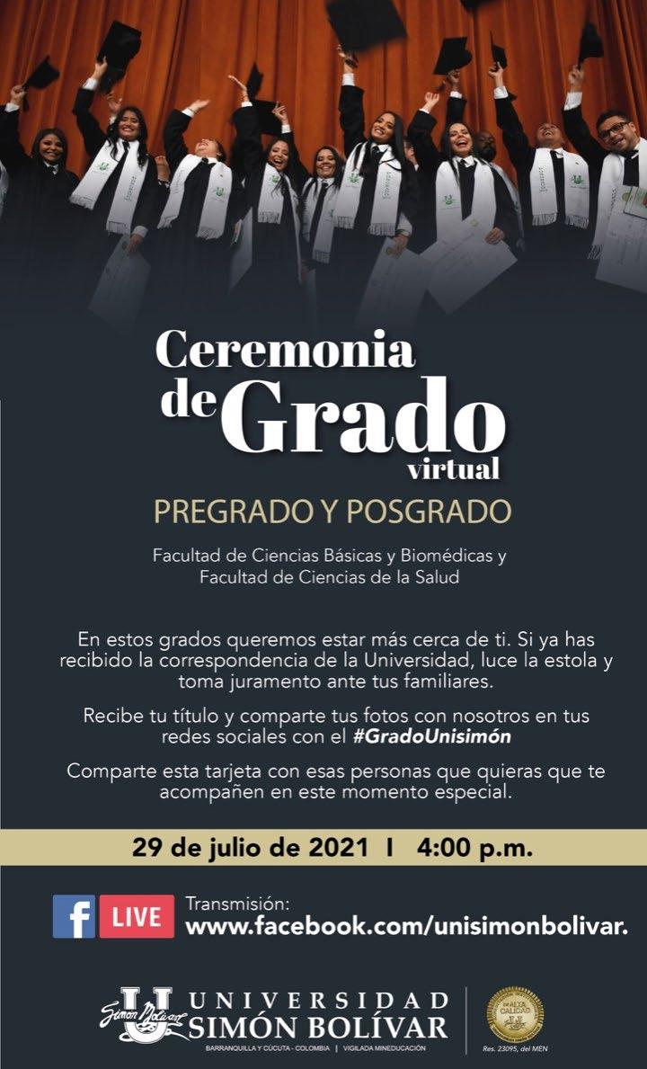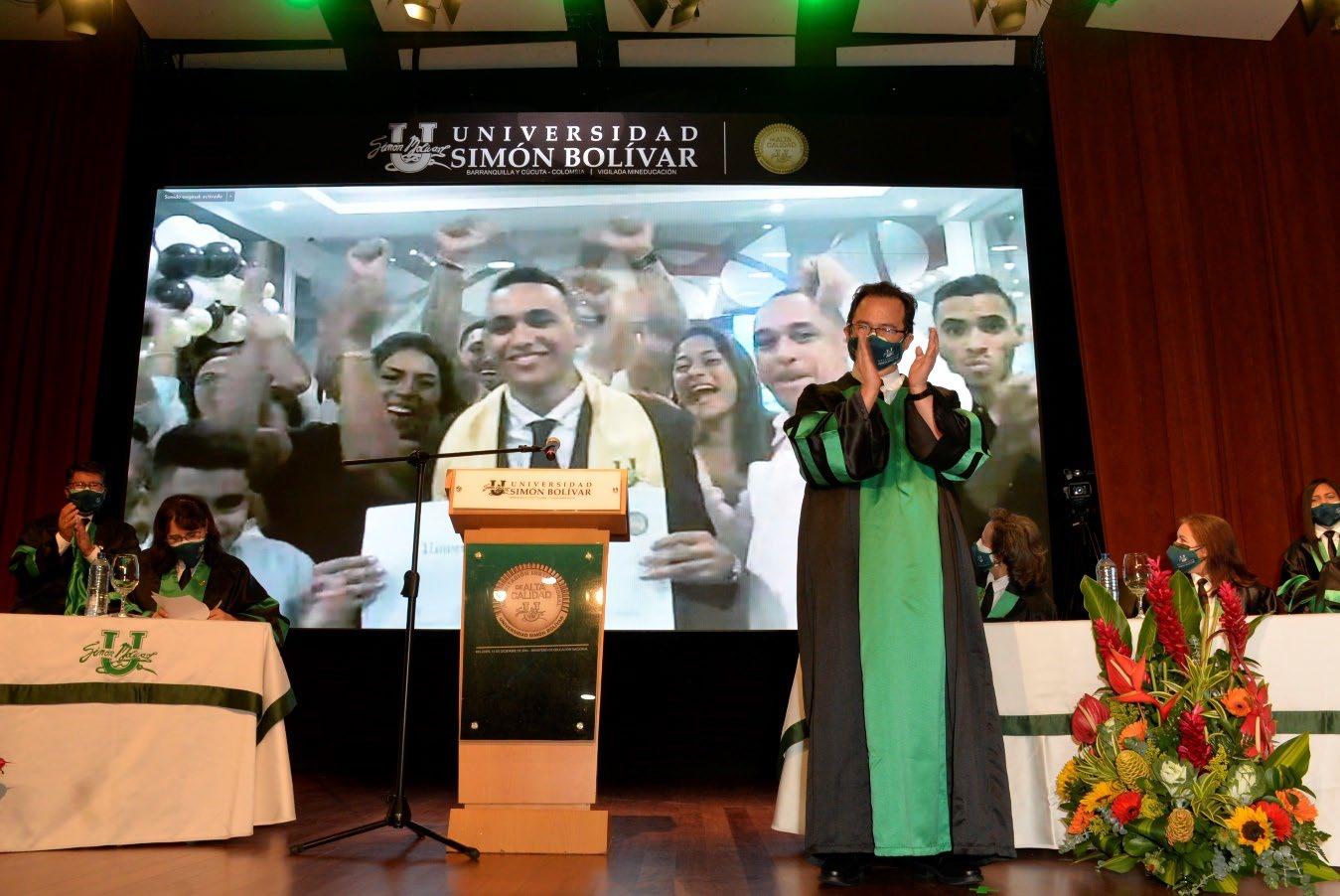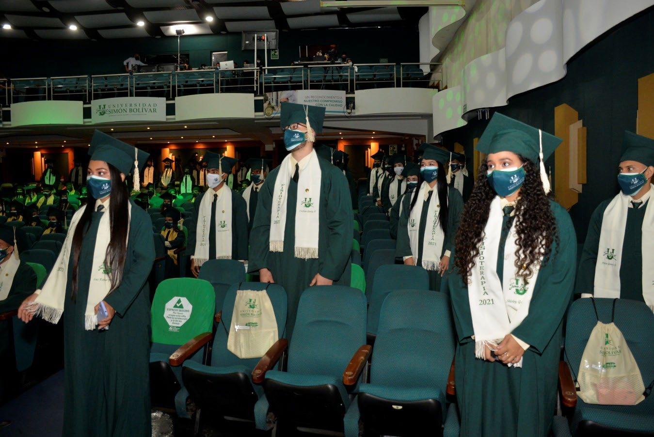La pandemia pausó las celebraciones presenciales de momentos tan significativos como las ceremonias de graduación. En julio de 2021, después de casi año y medio de aislamiento, el Teatro José Consuegra Higgins volvió a engalanarse con las togas y birretes de 214 graduandos de pregrado y posgrado de la Facultad de Ciencias de la Salud y la Facultad de Ciencias Básicas y Biomédicas, quienes pudieron participar en la primera ceremonia presencial y virtual de grados de la Universidad Simón Bolívar, cumpliendo a cabalidad las medidas de bioseguridad en el teatro, y viendo la transmisión a través de las plataformas de Zoom y Facebook.