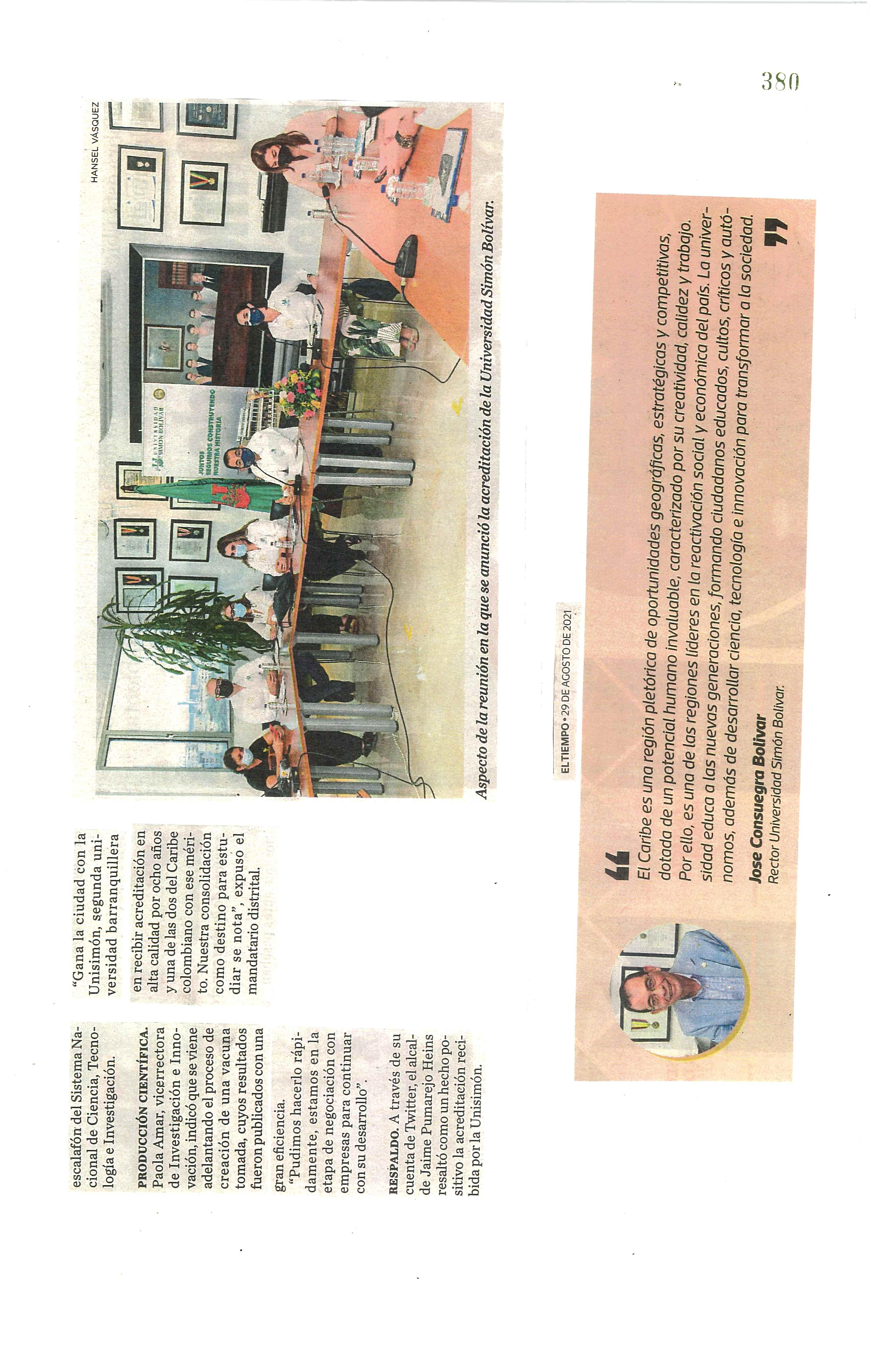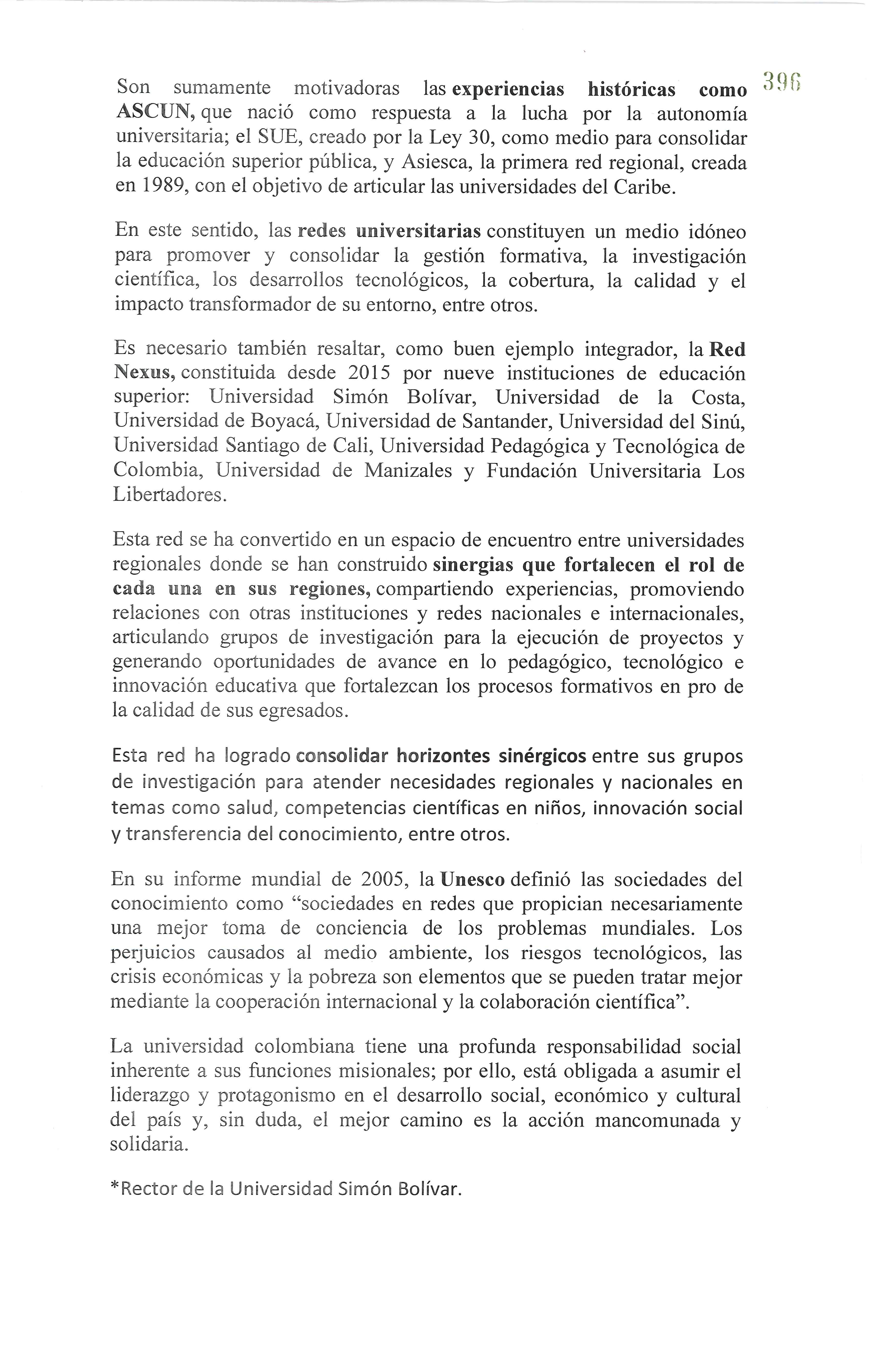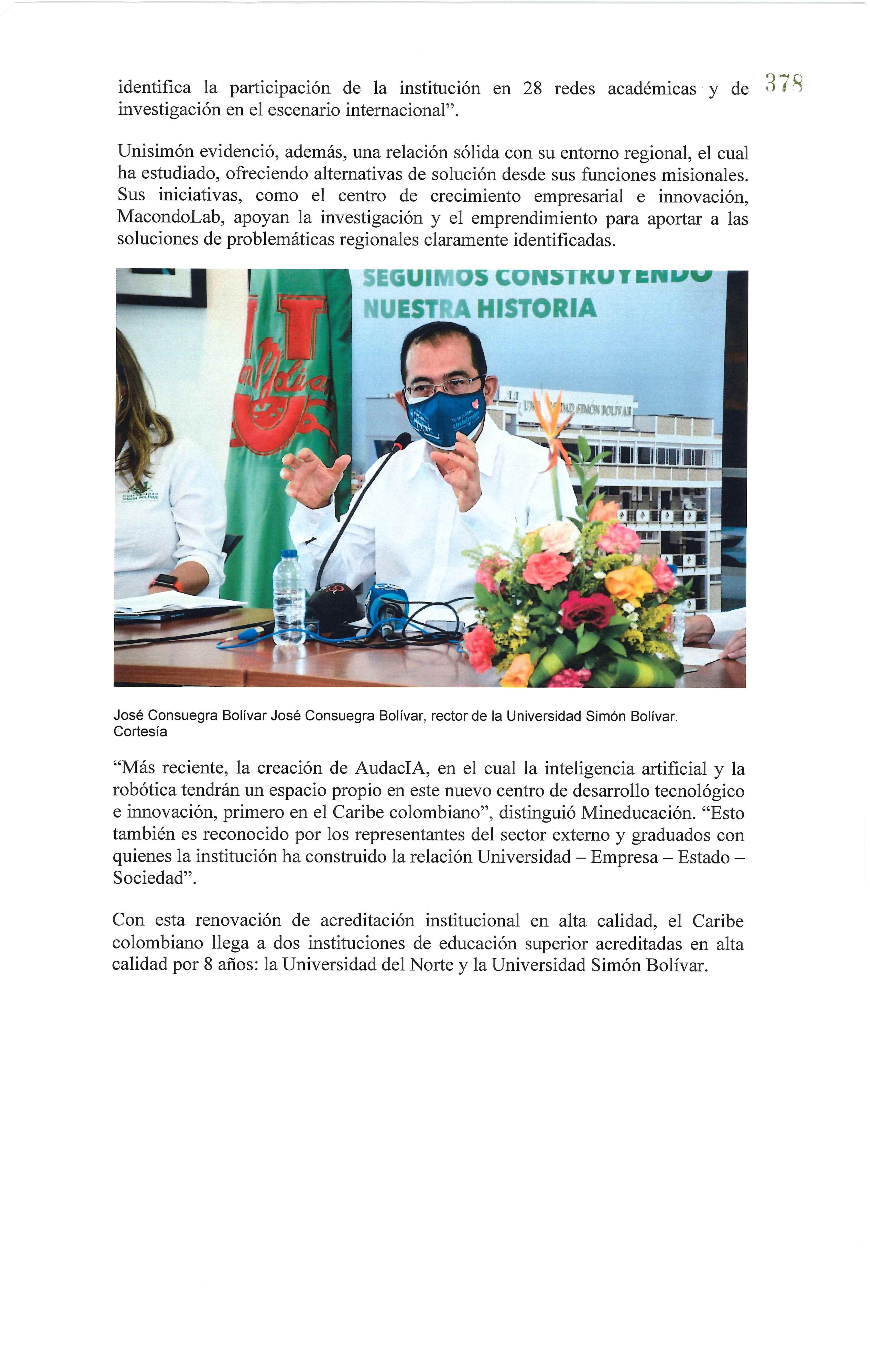 DEL DR. JOSÉ CONSUEGRA BOLÍVAR RECTOR DE LA UNIVERSIDAD SIMÓN BOLÍVAR