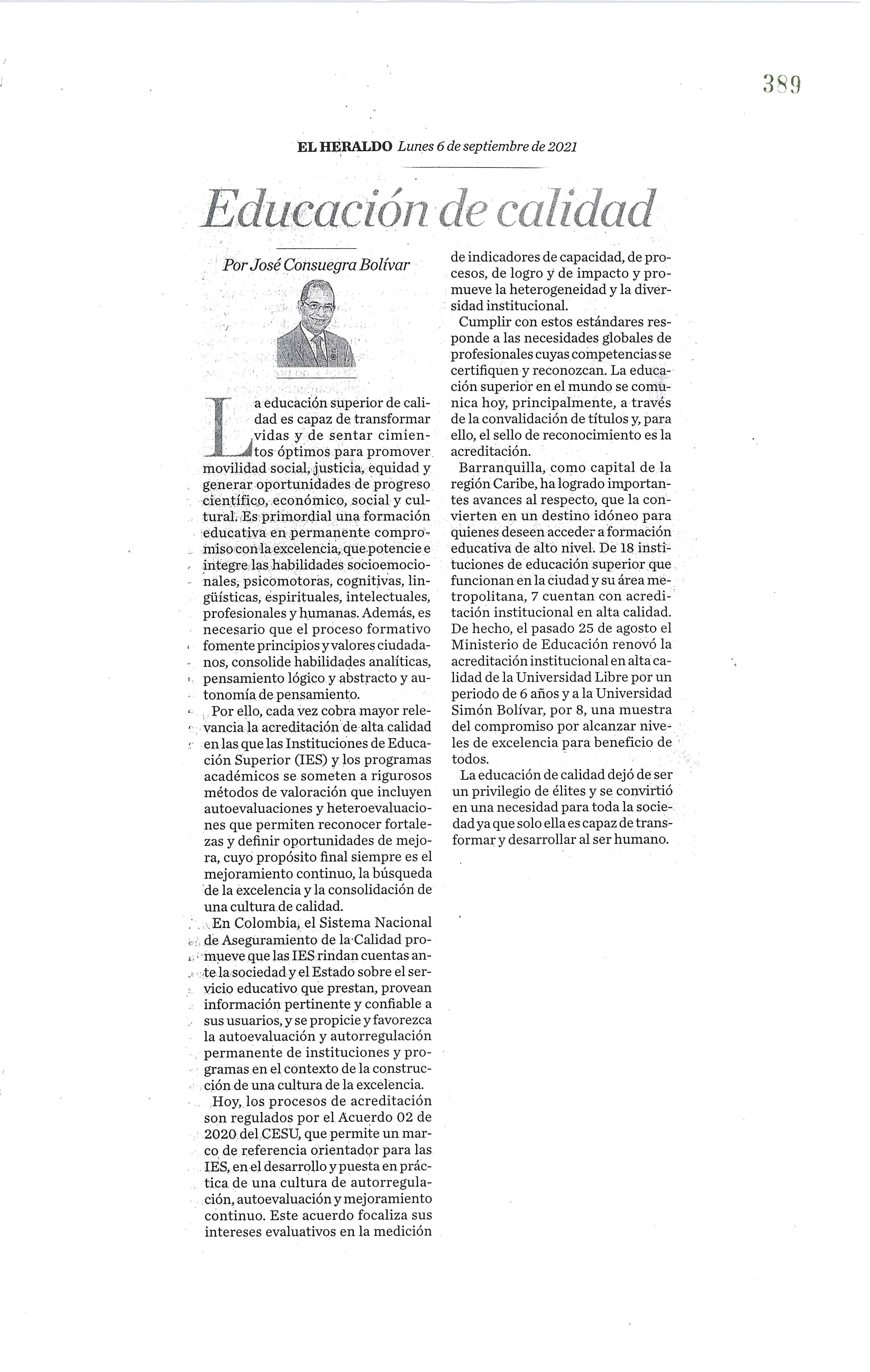 José Consuegra Bolívar Rector