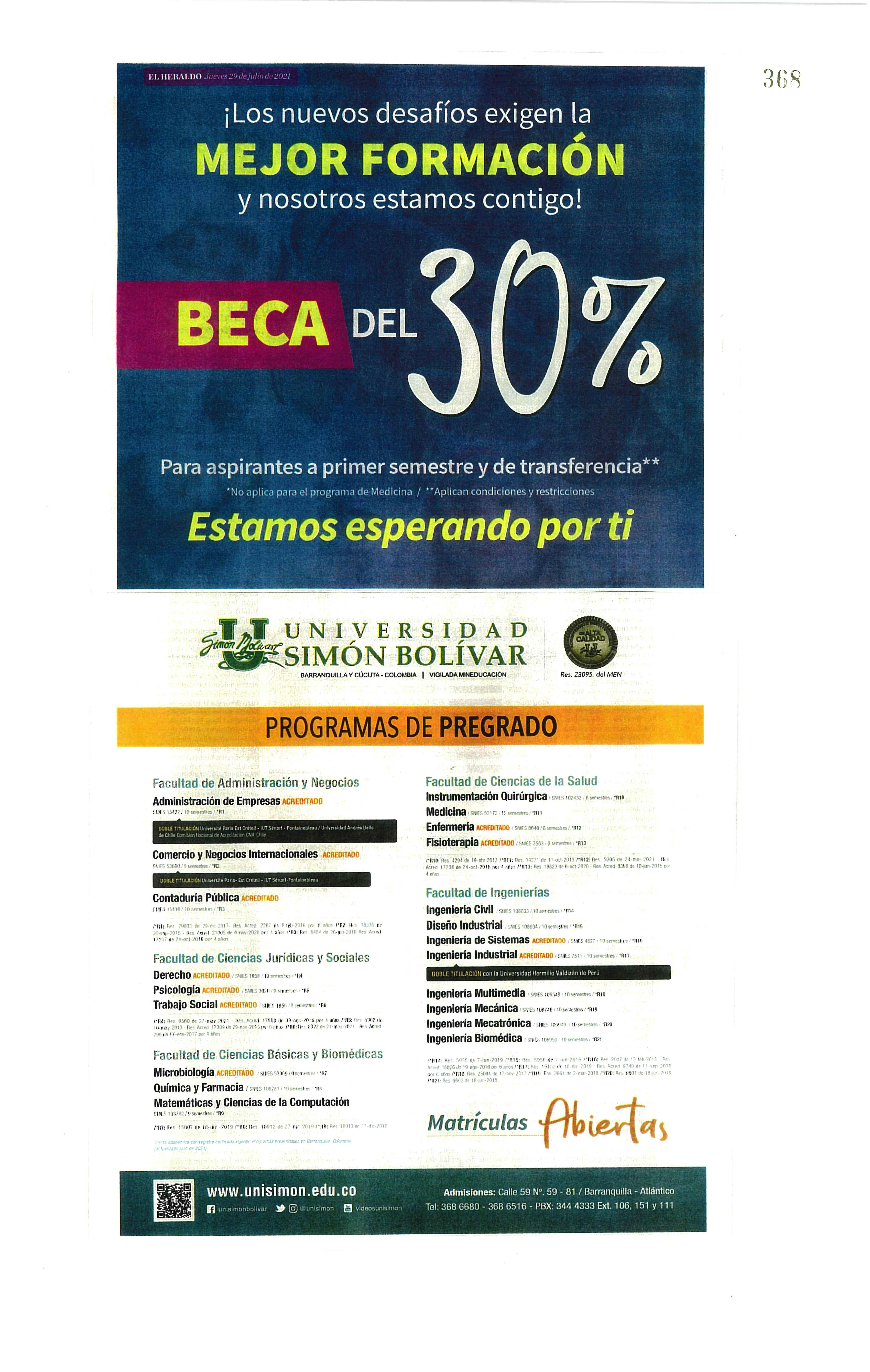Convocatoria laboral vigente en Unisimón - 089 I Anuncio de la Dirección de Talento Humano
