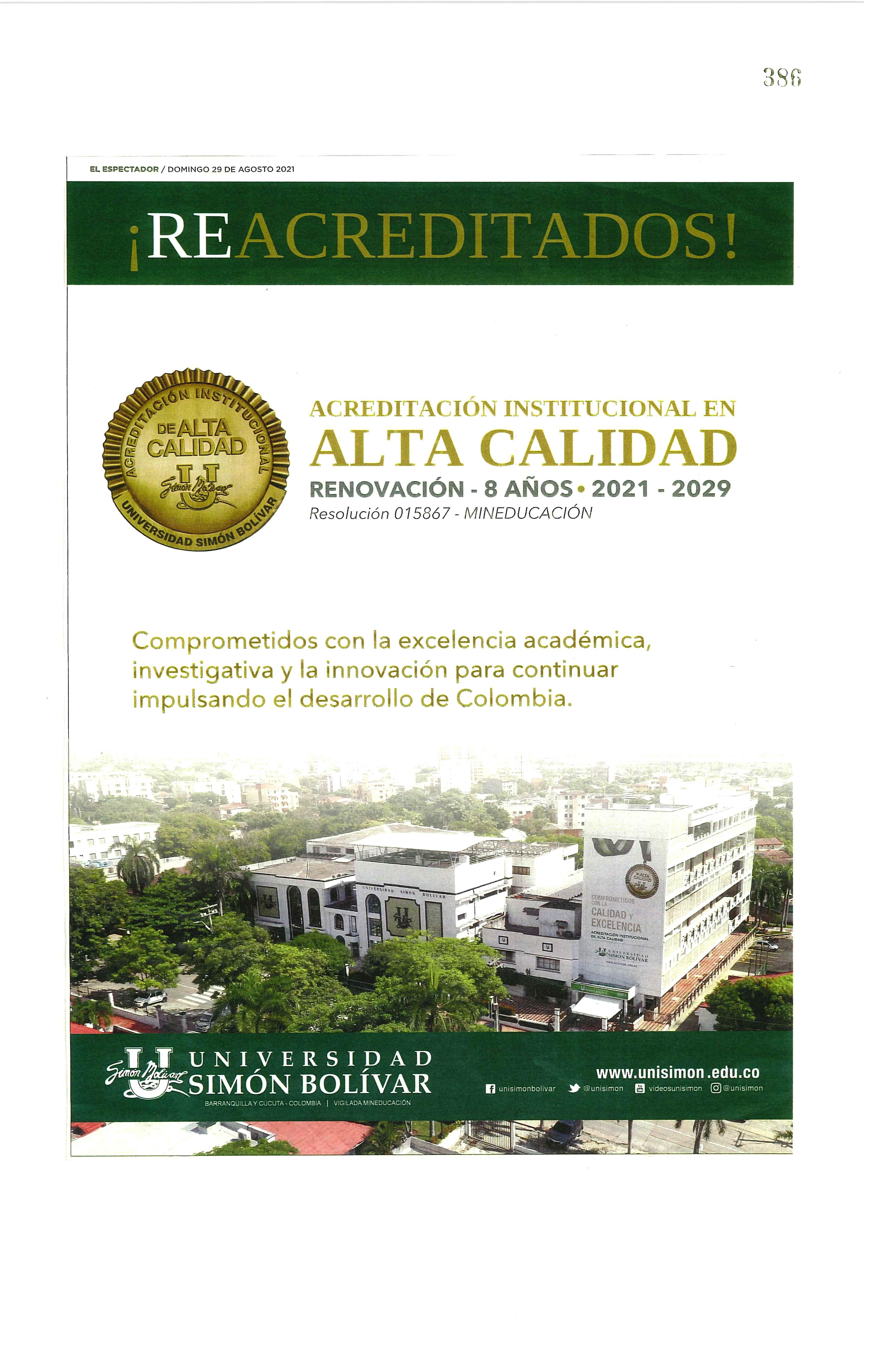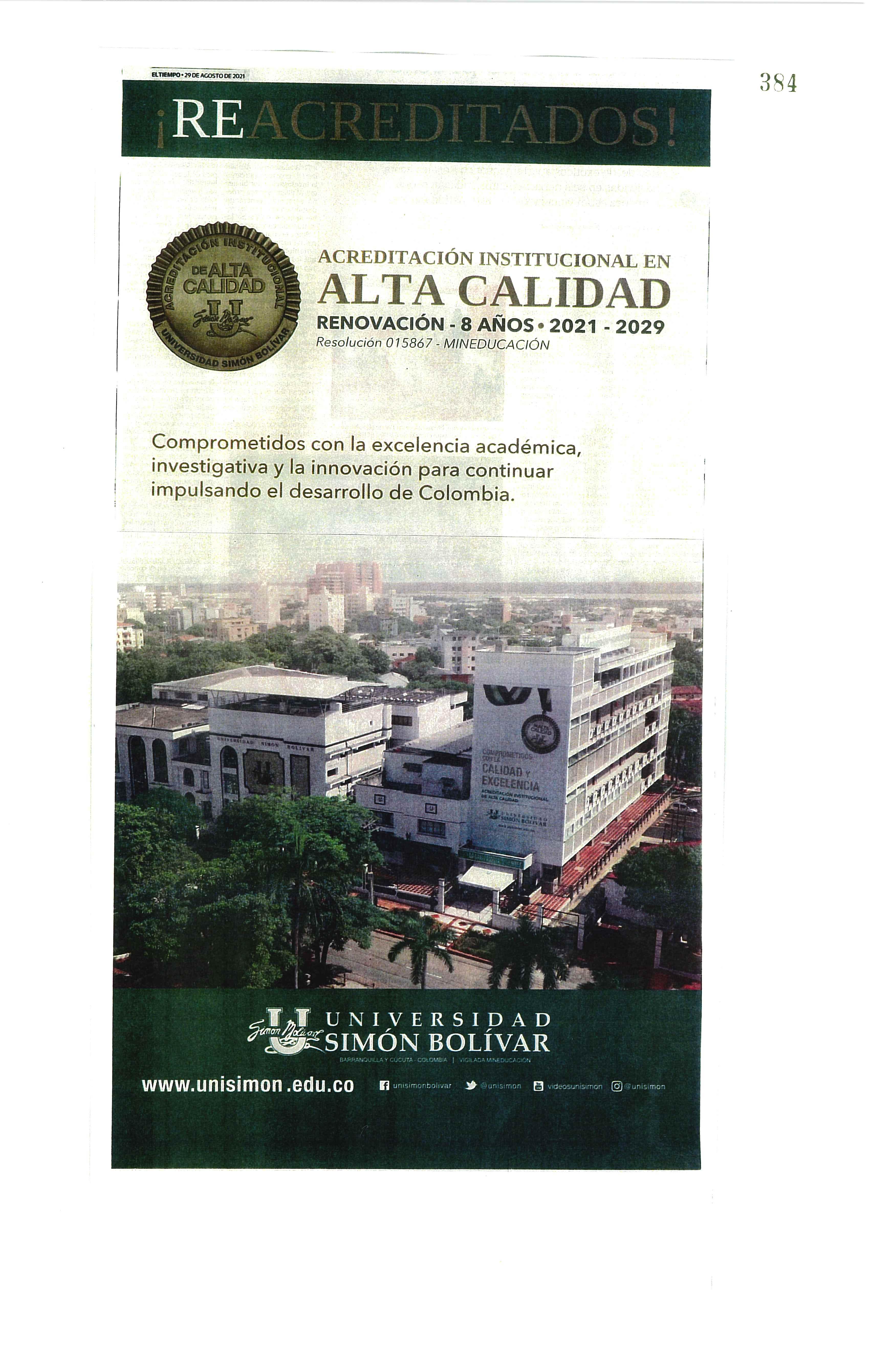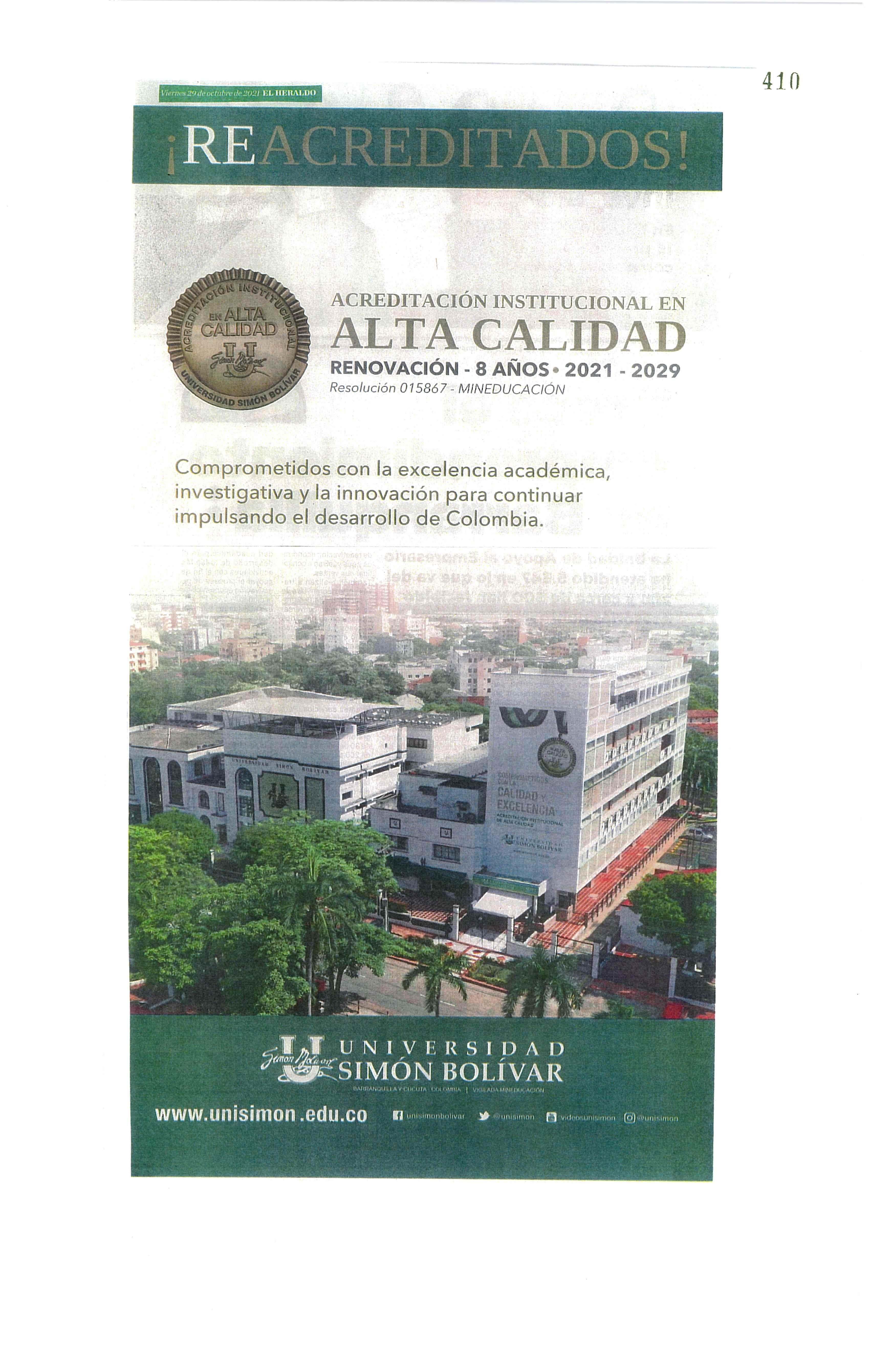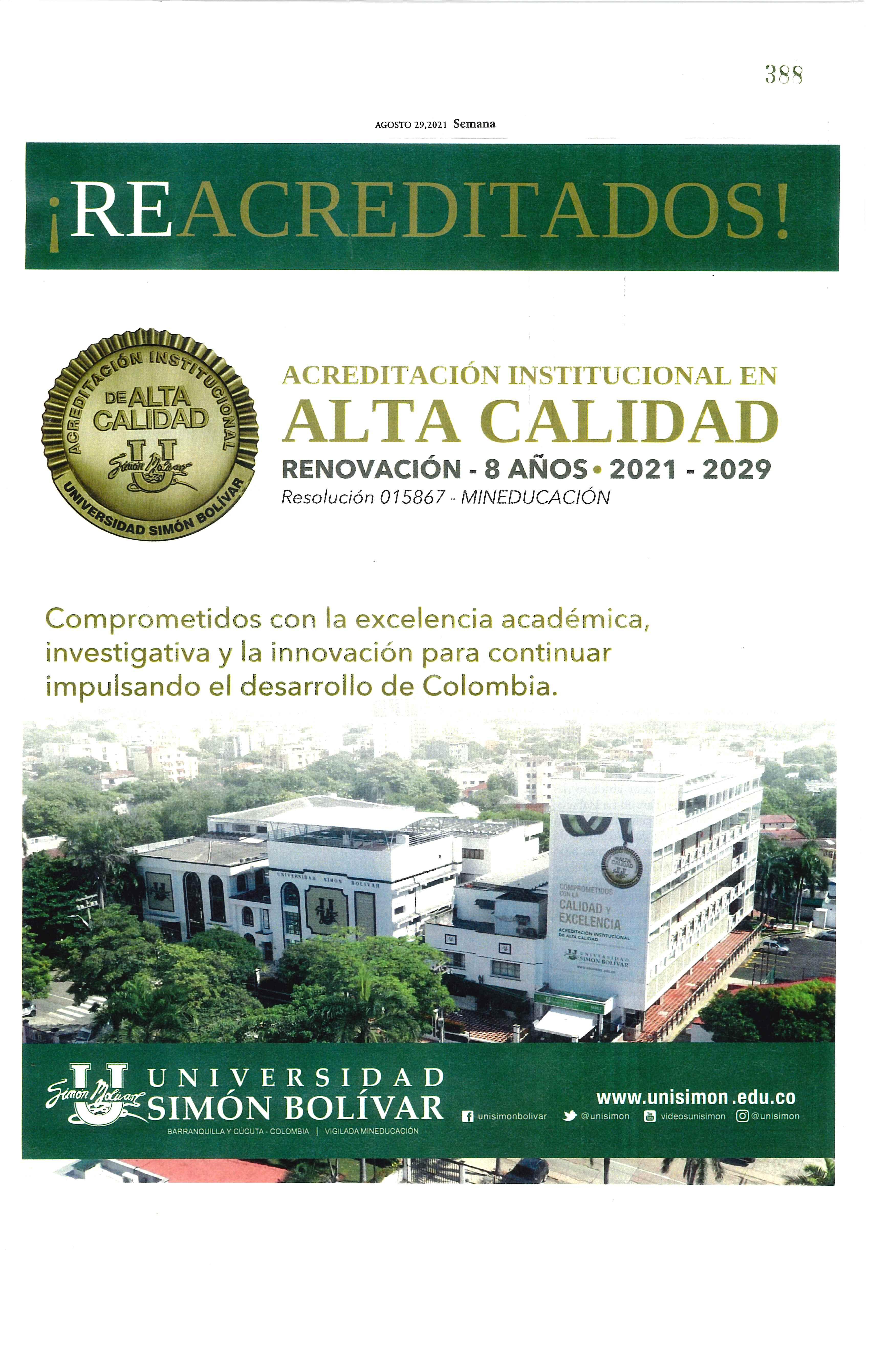 COMUNICADO: UNISIMÓN OBTIENE SELLO DE SOSTENIBILIDAD ICONTEC ……………. 030
