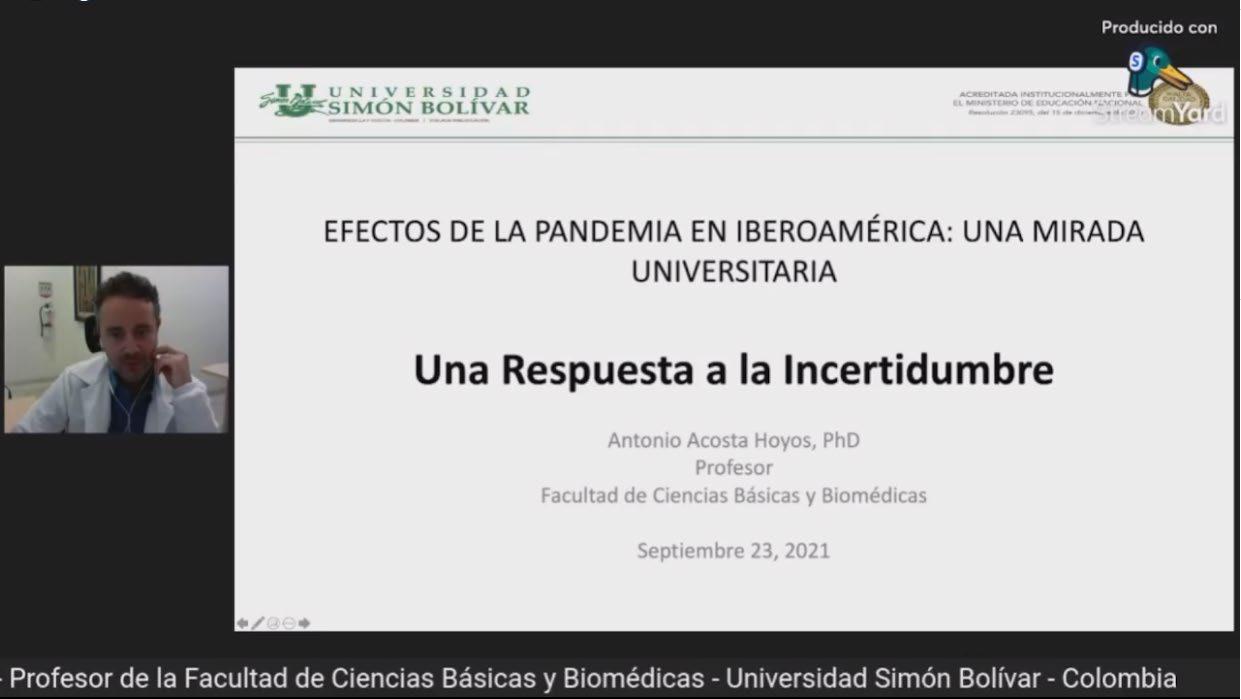 En el caso de las instituciones educativas, como la Universidad Simón Bolívar, tuvimos que inmediatamente trasladarnos a actividades a través de telepresencia, tuvimos que guardar obligatoria cuarentena y aislamiento social por ordenamiento del gobierno Nacional y se translocó toda la vida. Si recuerdan, en marzo del año pasado pensábamos que esta situación solo llegaría hasta junio, luego hasta septiembre, después pensamos que para Navidad estaríamos libres de esta pandemia, pero hoy llevamos 17 meses y todavía seguimos subyugados en esta situación.