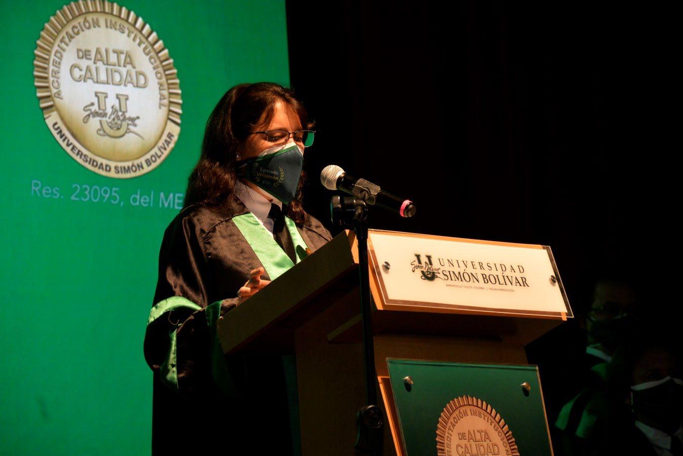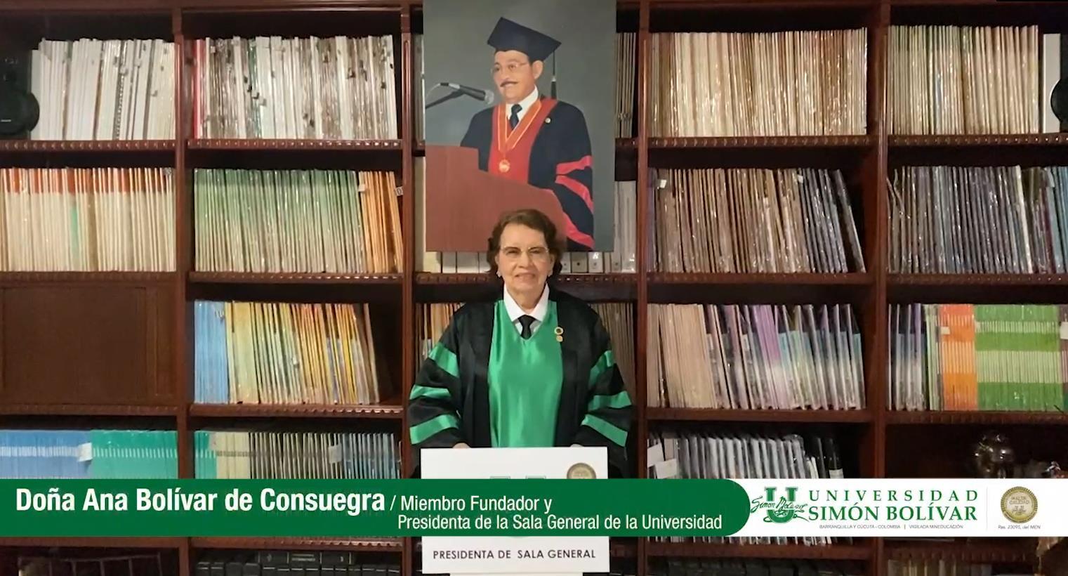 Muy buenas tardes, invitados especiales, graduandos, amigos y amigas presentes en esta transmisión. Hoy es jueves 29 de julio de 2021 y nos encontramos en el Teatro José Consuegra Higgins de la Universidad Simón Bolívar transmitiendo en vivo esta ceremonia de graduación. Mi nombre es Rosario García González, secretaria general de la Universidad Simón Bolívar.