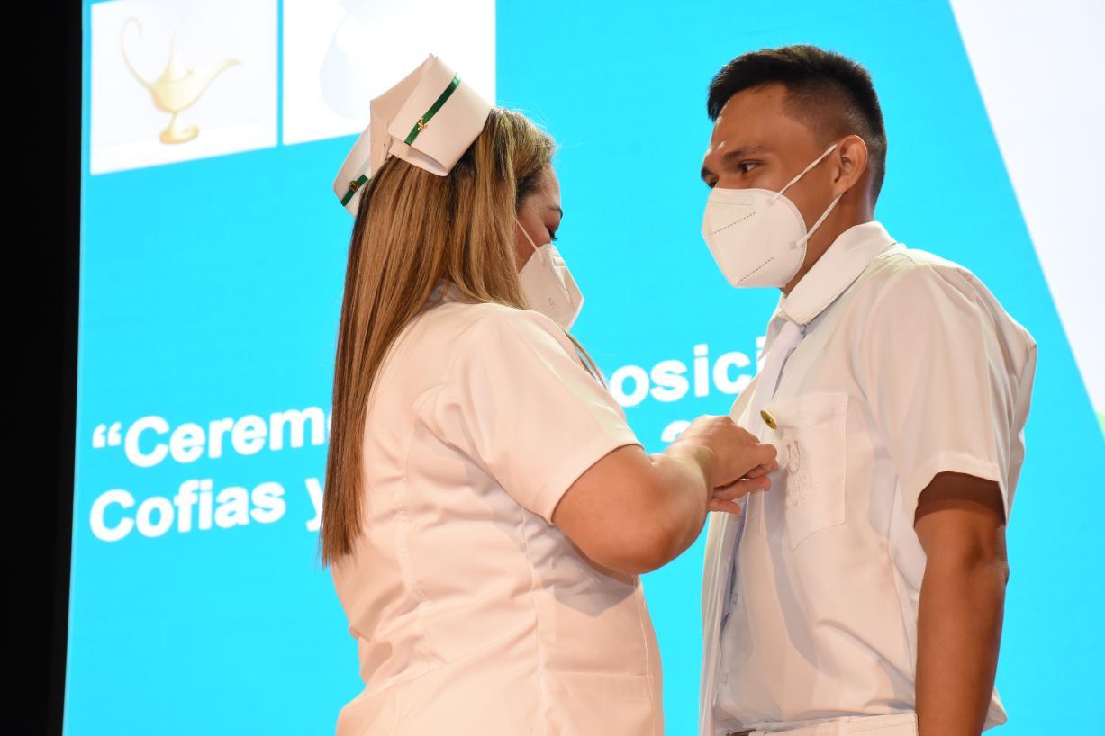 Quisiera preguntarles cuántos de ustedes tiene 20 años, porque les comento que también saqué la cuenta y llevan 7300 días de vida. ¿Cuánto recuerdan de eso, jóvenes? ¿10, 20, 50, 100 días?, cada uno de ustedes lo sabe. Sin embargo, este día de hoy es de esos pocos que se recuerdan, que nunca van a olvidar, por eso los invito a que lo vivan plenamente. El acto se está grabando y va a quedar posteriormente guardado en la plataforma de Facebook, por lo tanto, cada vez que lo quieran recordar van a la red social, lo reproducen y lo viven nuevamente, pero hoy vívanlo, jóvenes, no gasten ni un segundo en el celular, gócenlo, ábranse a toda su capacidad de sensibilidad y vívanlo plenamente, a eso los invito. Además, todo resulta sumamente grato, porque son varias las circunstancias que así lo favorecen; pondría en primer lugar el logro del sueño anhelado de ser médico o médica, ser enfermero o enfermera, ser instrumentador o instrumentadora quirúrgica, fisioterapeuta, microbiólogo, especialistas, muchos años de trabajo, de estudio, de sacrificio y de compromiso para llegar aquí. Sin duda, todos, a pesar de ser de sacrificio, han sido enmarcados en la alegría y en la felicidad de ser un objetivo noble, como es el de ser profesional presto al servicio de la sociedad y de su país, con muchos sacrificios y largas noches de estudio, por lo tanto, sus corazones hoy están pletóricos de felicidad