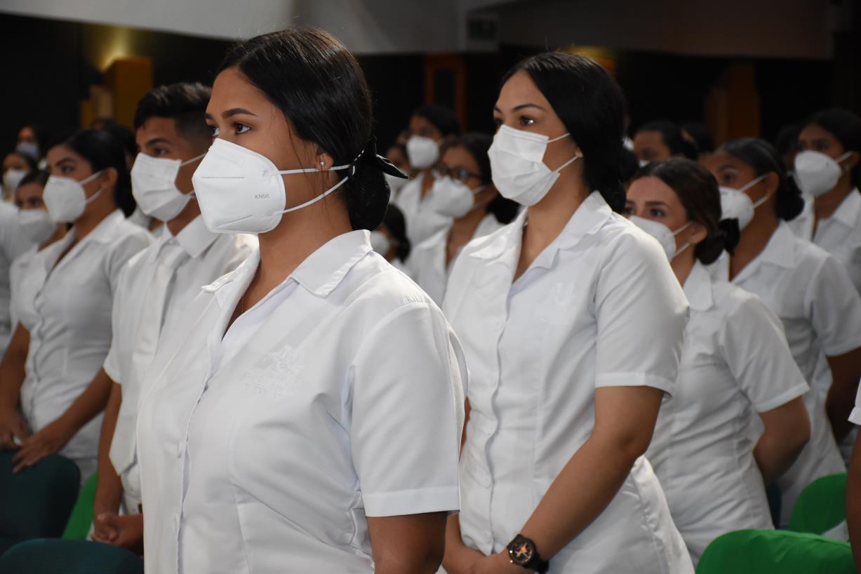 Esto tiene una connotación particular y es que esta realidad les ha permitido a ustedes la oportunidad, por ejemplo, en el caso de los médicos de transcurrir su internado en medio de una pandemia de estas características, que es una enseñanza importante no solo de la vida, sino una enseñanza en lo que es su formación profesional, así como también lo es para los últimos dos semestres de Enfermería y del resto de las profesiones de la salud que hoy se gradúan y de las especializaciones. No hay que leerlo en textos académicos, ni observarlo en un video, sino que lo están viviendo en carne propia, han podido ustedes aprender desde la mirada de un profesional de la salud cómo se debe actuar en medio de una pandemia, con el objeto de no repetir errores que se hayan cometido por parte de los servicios de salud o de la sociedad en general. Es una enseñanza que les permitirá a ustedes tener la competencia para que, a partir de mañana, cuando ya ejerzan su rol asistencial, lo puedan hacer de la mejor forma, de la manera más estratégica, más impactante para lograr actuar en beneficio de la salud de sus pacientes