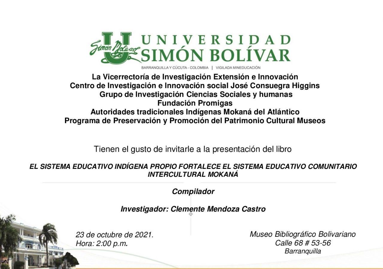 El Grupo Educación, Ciencias Sociales y Humanas (A1) de la Universidad Simón Bolívar, liderado por el profesor Clemente Mendoza Castro (indígena mokaná), realizó la presentación del libro institucional ‘Sistema educativo indígena propio fortalece el proyecto educativo comunitario intercultural Mokaná’, texto que compila cientos de autores y es el resultado de la investigación “Educación Indígena Intercultural Propia Mokaná en el marco del SEIP y normas vigentes.