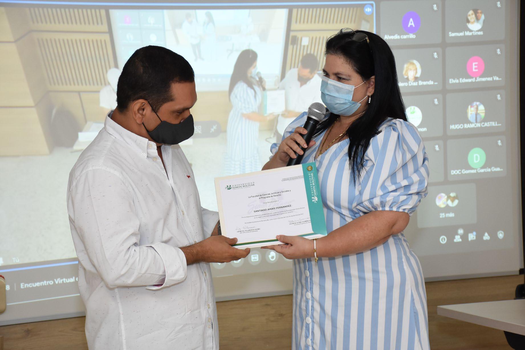 Quiero que esa sea la senda de su vida, quiero desearles los mayores éxitos, esperando que pronto, si lo creen válido, los tengamos aquí para ser especialistas en medicina, en el área de la enfermería, de la fisioterapia, para que se siga engrandeciendo su capacidad de ser solidarios y de brindar esa mano sanadora que se deriva de sus conocimientos, ese es nuestro deseo. Si me permiten uno personal les diría que quisiera que cada uno de ustedes me supere en lo que ha sido el ejercicio de mi vida, porque no hay nada más que llene de orgullo a un profesor que su alumno lo supere, por eso, les deseo muchos éxitos, les reitero mis felicitaciones e, igualmente, mi saludo cariñoso a sus padres, sus hermanos, que por estas limitaciones que nos pone la pandemia no están aquí acompañándolos, pero que están observándolos a través de Facebook. A todos, muchas gracias por creer en esta, su Universidad Simón Bolívar