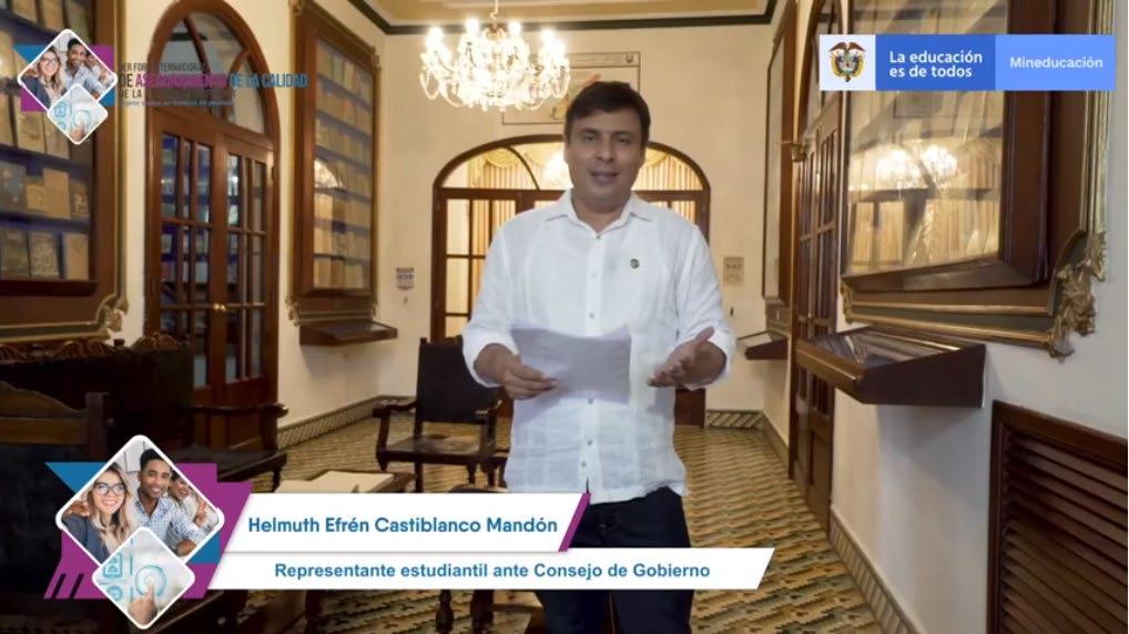 Muy buenas tardes para todos. Un saludo especial para la señora vicerrectora académica, señores decanos, señores directores de programa, jóvenes graduandos, que son partícipes de este grado solemne que de manera híbrida se realiza hoy en el teatro universitario José Consuegra Higgins de nuestra Alma Mater. Igualmente, quiero saludar con cariño a la señora presidenta de la Sala General, doña Ana Bolívar de Consuegra, al resto de miembros de dicho organismo de máxima dirección, que se encuentran a través de la virtualidad siendo partícipes también de este acto.