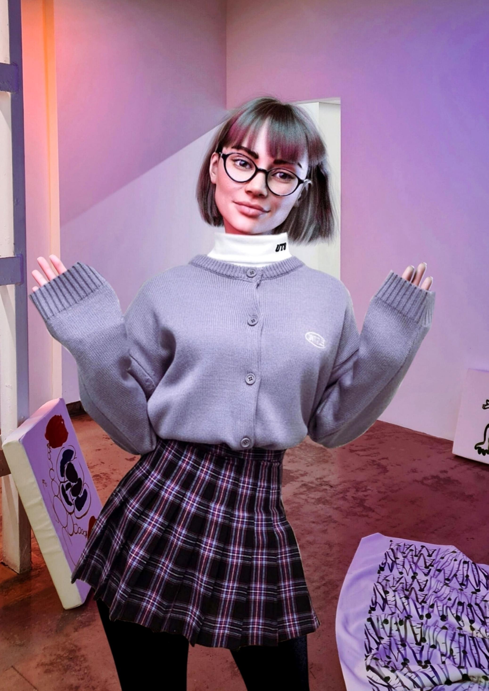 - Šis ceļš līdz tēmai, protams, nav lineārs. Mana pirmā izglītība iegūta Rīgas tehniskajā universitātē – inženiera grāds apģērbu un tekstila tehnoloģijā. Kā jau inženierzinātnēs, mums bija ļoti daudz tehnisku priekšmetu. Viens no obligātajiem kursiem bija programmēšana. Aizmetņi apvienot kaut ko tehnisku un radošu nāk no tiem laikiem. Virtuālajiem ietekmētājiem var vilkt paralēles ar 2000 gadu sākumā ļoti populāro spēli “The Sims”, kur varēja būvēt mājas un modelēt cilvēkus. Tieši šis aspekts veidot un modelēt cilvēkus spēlē man bija vismīļākais. Jau tad, būdama maza meitene, es varēju stundām ilgi kombinēt elementus un skatīties, ko es varu izveidot. Pēc Rīgas tehniskās universitātes absolvēšanas dažus gadus es darbojos radošajās industrijās, strādāju gan kā stiliste, gan scenogrāfe, īstenoju radošus projektus, kā fotosesijas un videoklipu filmēšanas. Tad iestājās pandēmija un es izdomāju, ka gribu iemācīties kaut ko jaunu. Vēl nebiju nonākusi līdz idejai, ka jāiet mācīties kaut kas akadēmiskajā vidē un sāku pašmācības ceļā apgūt 3D dizainu. Būtībā, lai kavētu laiku pandēmijas sākumā. Manas iemaņas šajā jomā ir bāzes līmenī, bet man patīk veidot 3D cilvēkus. Vienu brīdi es savus
