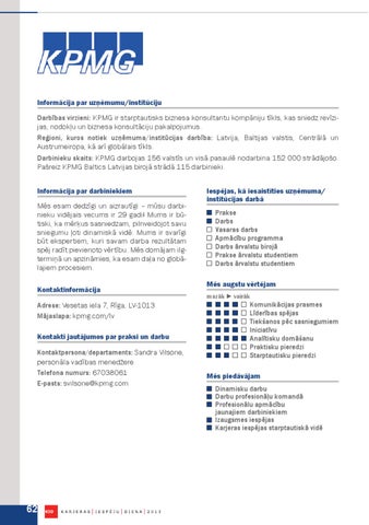 personāla vadības menedžere Telefona numurs: 67038061 E-pasts: svilsone@kpmg.com