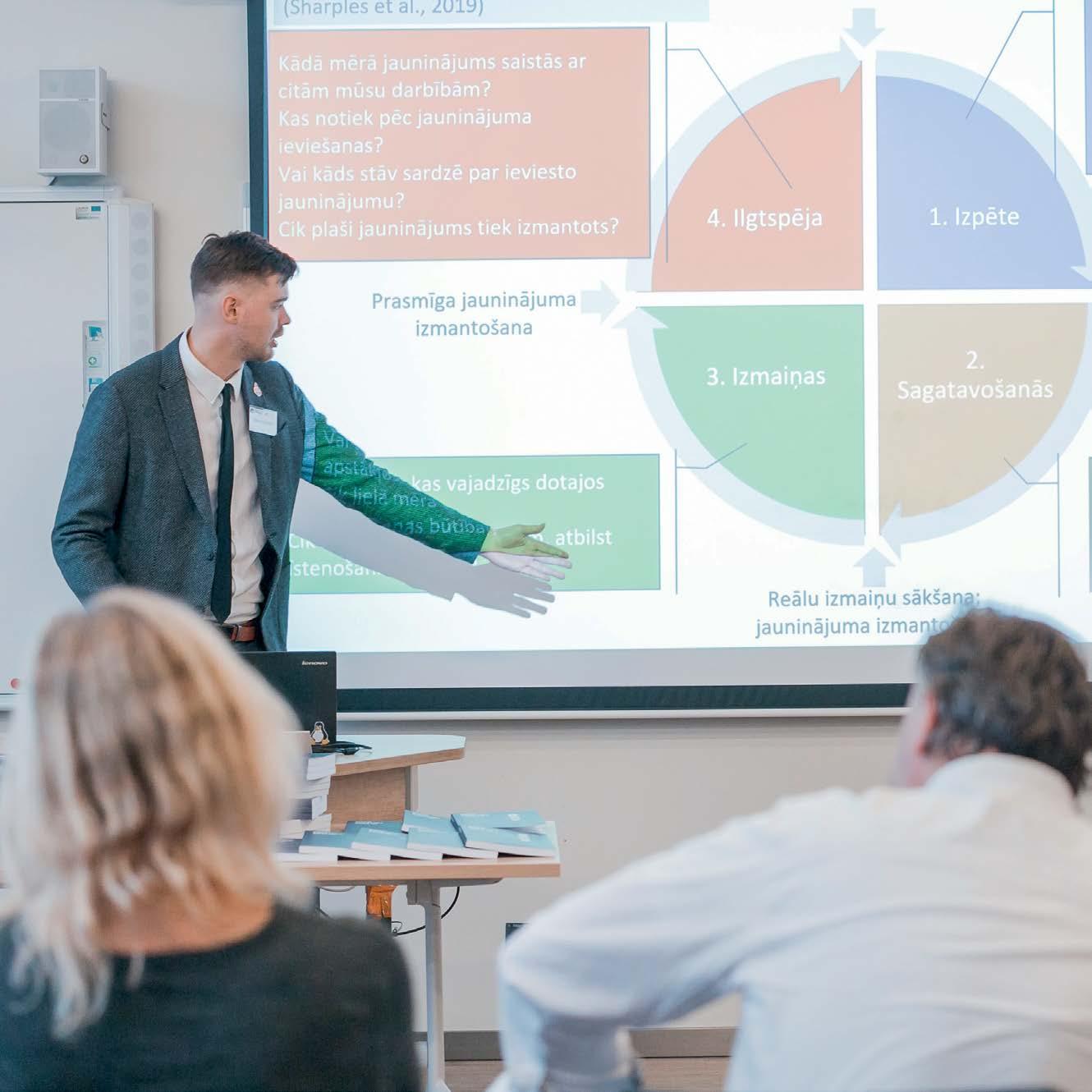 22 23 Ieņēmumi, miljonos EUR Valsts finansējums studijām 36 Projekti 42 Studiju maksa 16 Zinātnes bāze un sniegums 12 Maksas pakalpojumi 12 Īpašumu atsavināšana 5 Pārējie ieņēmumi 6 Ieņēmumi kopā 129 Izdevumi, miljonos EUR Atlīdzība 60 Preces un pakalpojumi 30 Kapitālieguldījumi 14 Stipendijas 4 Transferti 12 Citi izdevumi 6 Izdevumi kopā 126 Revenue, MM EUR State funding for studies 36 Projects 42 Study fees 16 Institutional base and perfomance-based funding for research 12 Paid services 12 Disposal of properties 5 Other revenue 6 Total revenue 129 Expenditure, MM EUR Remuneration 60 Goods and services 30 Capital investments 14 Scolarships 4 Transfers 12 Other 6 Total expenditure 126