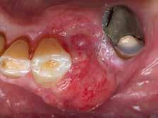 dass die Schwellung in der Region 34 nach wie vor vorhanden sei und die Schmerzen seit der Zahnentfernung noch stärker geworden seien. Am 16.4.2020, nur drei Wochen nach der Erstaufnahme, wurde der Patient durch Dr. Domic (Abteilung für Orale Chirurgie) begutachtet. Der Patient gab an, trotz Zahnextraktion und Nachbehandlung zunehmende Schmerzen und eine granulomatöse und hyperplastische Schwellung in der Region von 34 zu haben. Die granulomatöse Schwellung in der Region von 34 wurde fotodokumentiert (Abb. 2 u. 3) und der Patient wurde über die Notwendigkeit einer sofortigen Biopsie aufgeklärt.