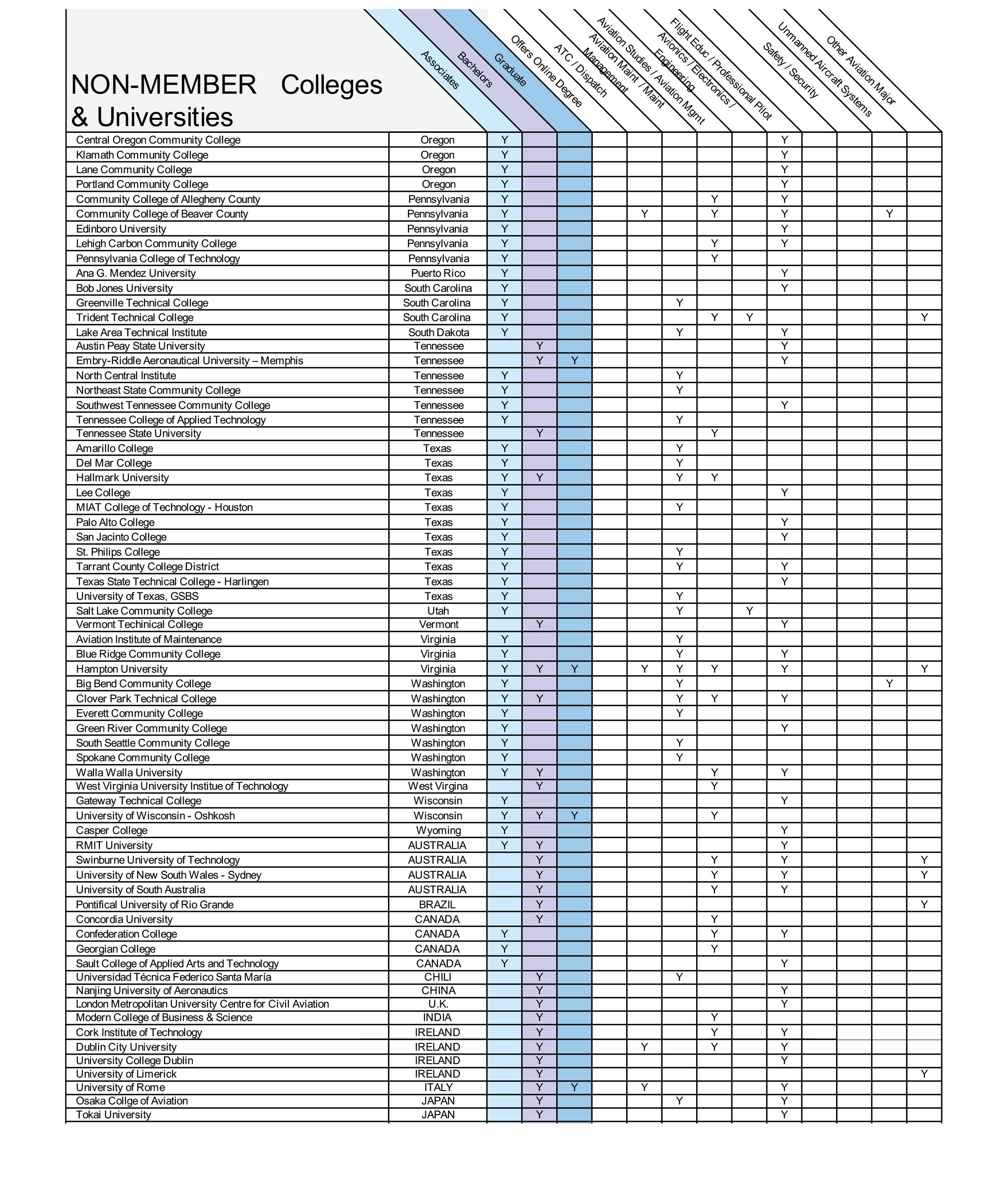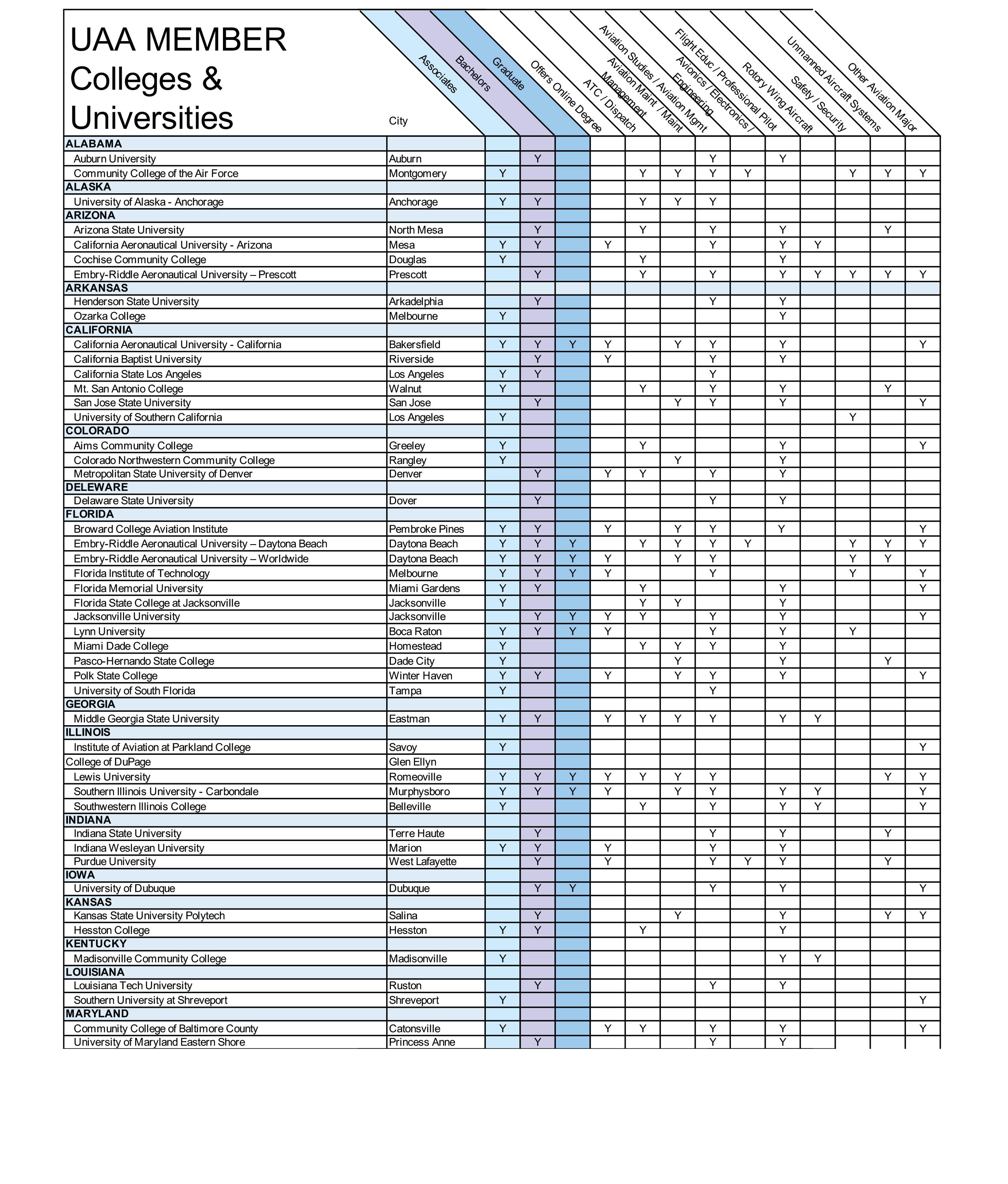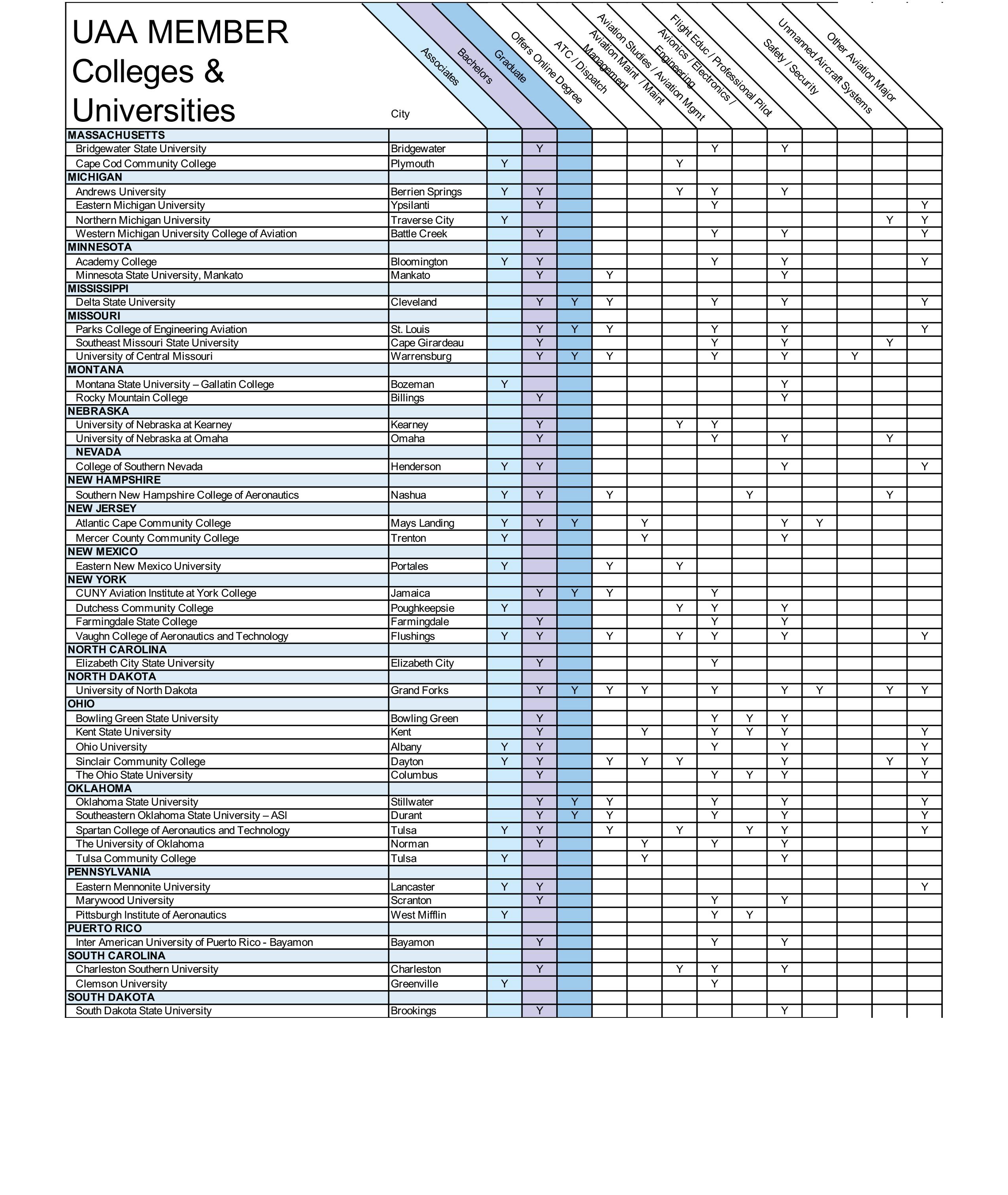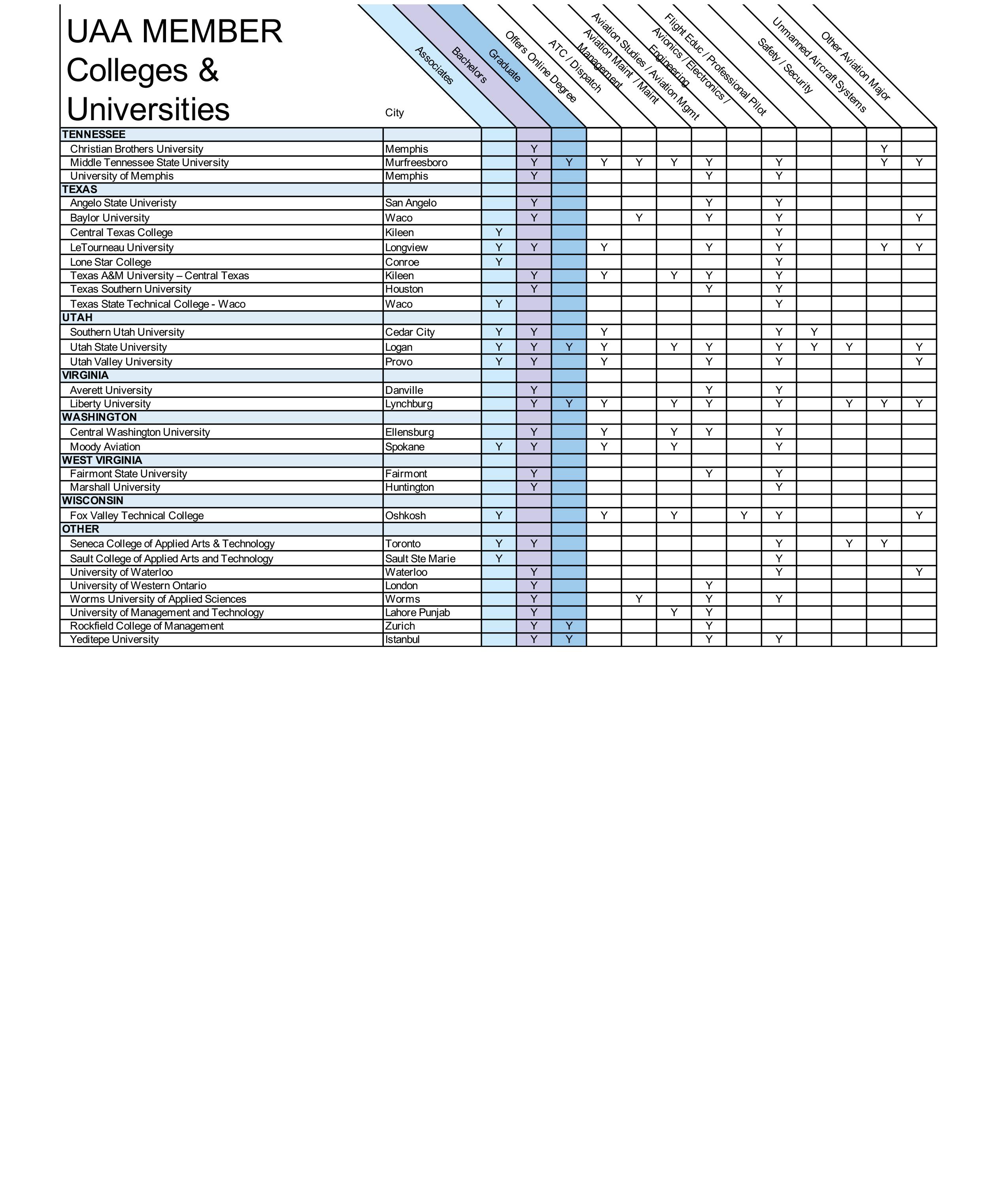 In order to ensure accuracy of the data, extensive cross checking was performed with the surveys, earlier UAA publications and online sources. We cannot guarantee the accuracy of all listings. Representatives of institutions that find an error in the listing are requested to send a corrected version of their listing to hello@uaa.aero. New programs and institutions that qualify for a listing based on the criteria stated above may forward a request in writing requesting inclusion in the next edition of the Guide.
