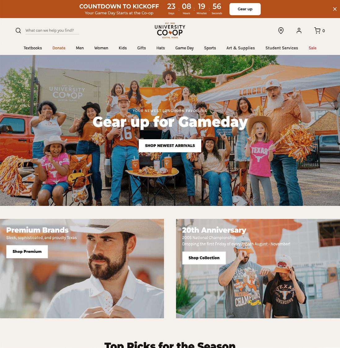 This summer we migrated the spiritwear online assortment to a new platform, Shopify. Shopify gives us much more flexibility and access to technology to support sales and donation growth in this channel, thus funding more course material scholarships for Longhorns. Our next project will focus on bringing the academic portion of our assortment into the Shopify experience to have one whole website experience. We are excited for the opportunities and technology that Shopify provides to support funding more scholarships for students!