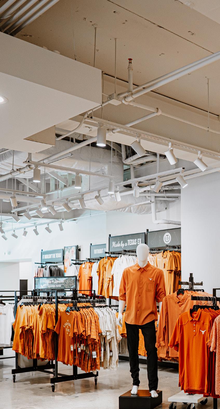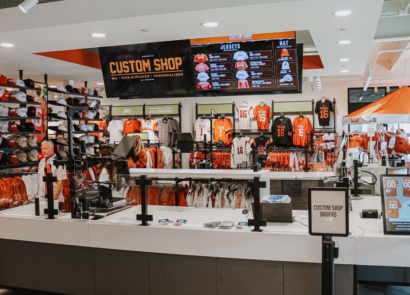 We had the opportunity to expand our first floor retail space this year. The expanded space includes a new and revamped custom shop which now offers the ability to customize nearly every hat in the store! This additional retail space allows us to expand our assortment available in store and fund more course material scholarships for Longhorn students!