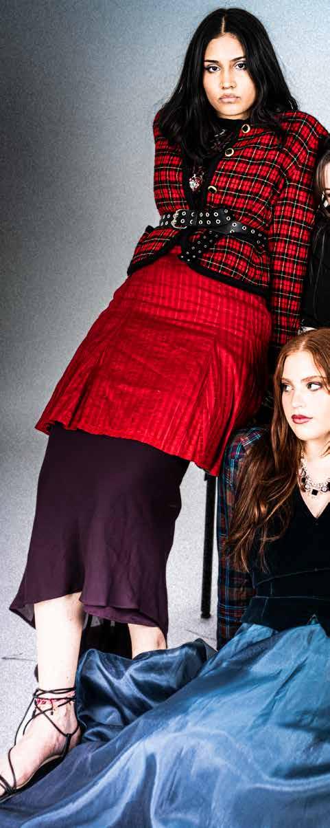 While taking on the position of Co-editor-inchief as a sophomore seemed quite daunting at first, I had an incredibly smooth transition. My other brain cell- I mean- my Co-editor-inchief, Ellie Batten, was a large part of what made this experience so enjoyable. Her passion for this edition was obvious from the beginning and only grew as everything came together. I also want to say thank you to our amazing executive team who poured so much time and effort into this edition. Our creative directors Charlie Wenig and Lay Harrison helped bring our vision of ‘80s and ‘90s nostalgia to life. Photographers Hazel Wagner and Fiona Hurless took the most magical photos. Lead Stylists Ava Bandura and Britney Kirwan made sure our models looked like they just walked out of the ‘90s, and a special thanks to Spencer Shaw from Rat Girl Vintage for helping us achieve our ‘80s, punk, Vivienne Westwood-inspired fantasy. Our design directors Revati Mahurkar and Rhea Srivastava used their talents to pull our articles and photos together, and our copy editors Rachel Musman, Jenny DeStefano, and Jolie Zenna sprinkled the UGirl voice into every article.