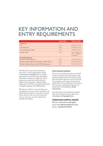 STREATHAM CAMPUS, EXETER Website: www.exeter.ac.uk/ug/law Email: ssis-admissions@exeter.ac.uk Phone: +44 (0)1392 723192