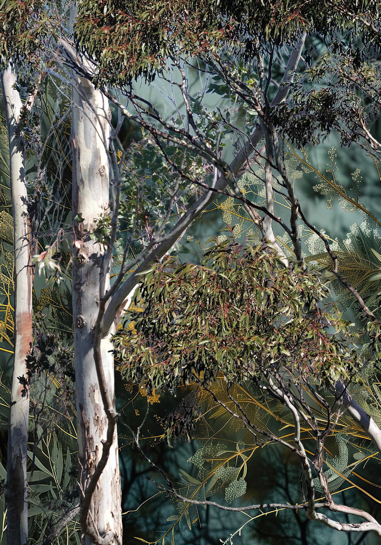 usando o próprio fogo - foi apresentada pelo primeiro-ministro australiano como um presente oficial para o presidente Joe Biden na Casa Branca. Em ‘Canopy’, a tecnologia se torna mais do que uma ferramenta de documentação. Ele se torna um colaborador no ato de reconstrução e sonho, sugerindo possibilidades especulativas de como podemos manter, transformar e renovar nossa conexão com o mundo natural. Cada trabalho dessa série está disponível como uma impressão de edição limitada. www.katherineboland.com.au
