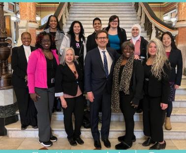 Illinois State Rep. Marcus Evans, Jr., a member of the Cancer Center’s Community Advisory Board, introduced the “Diversity in Clinical Trials” bill in the House. Several community advocates and University of Illinois Cancer Center leaders and staff traveled to the Illinois State Capitol to show support for the proposed legislation.