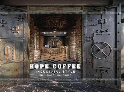 Inspired by the idea of a coffee factory, Hope Coffee utilizes the movement of the machine by an industrial design style. The main materials used in the space are wood, iron, and steel, with warm tones and gears on the ceiling and floor, curved wood which makes customers feel like visiting a real factory. Besides being a space, it also brings the element of story-telling which help to give a deep impression and experience to customers.