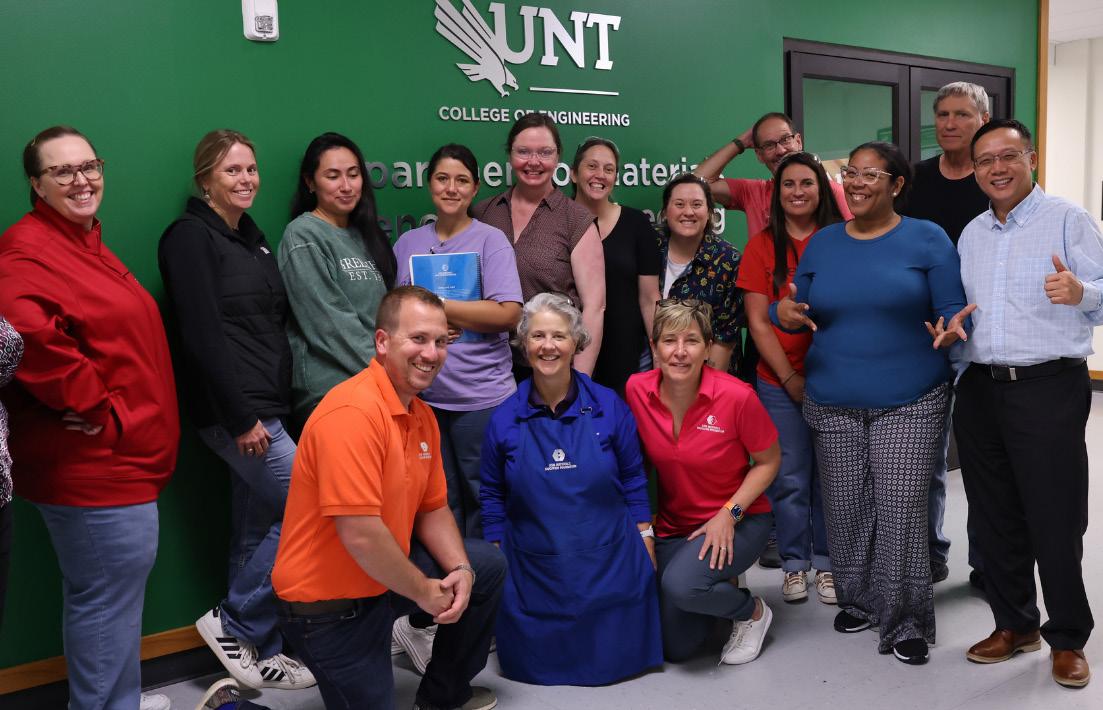 CMEE focuses on wide-bandgap semiconductors for highpower, high-frequency electronics, with an emphasis on materials such as diamonds. The center supports Department of Defense priorities including RF systems, sensors and secure communications. Research efforts are being strengthened through cleanroom upgrades, expanded faculty collaboration, and integration with UNT’s Materials Research Facility. Strategic partnerships with the Texoma Semiconductor Hub, TSIC and the Texas Institute of Electronics have secured $2.5 million in external funding, supporting eight U.S. graduate students annually.