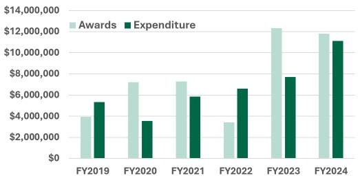 In fiscal year 2024, AMMPI researchers submitted 109 proposals fo r $54.9M to 80 federal and 29 non-federal sources. As a result of these proposal submissions, $9.8M was awarded.