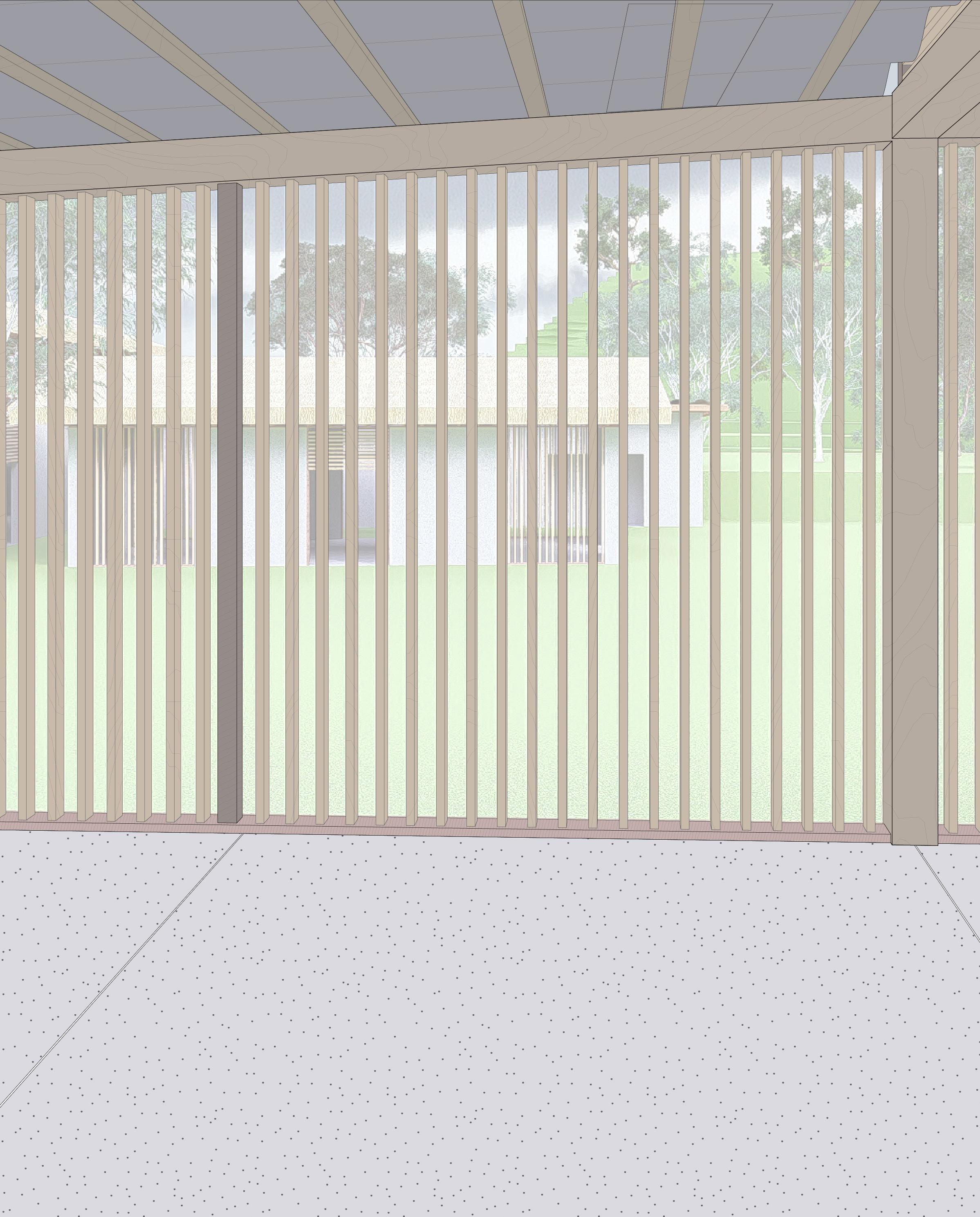 Rather than prioritizing one over the other, the old and new structures hold equal weight while the overlapped, interstitial zones become the focus of material saturation. Inherently both combined and separate spaces, these zones serve as connections, offering a unique experience, distinct from both the old and the new.
