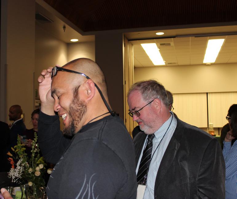 Kelly Hankin recounted stories of caretaking for her parents as a metaphor for taking care of the Johnston community as director and honored alumni who served on the Johnston staff during her time as director, including Denise Davis, Adam Ghovayzi, M.G. Maloney, and Maggie Ruopp. Julie Townsend discussed how Johnston is both a labor of love and faces ongoing threats from forces in the wider university and higher education environment and emphasized the necessity of continued alumni support for Johnston’s mission