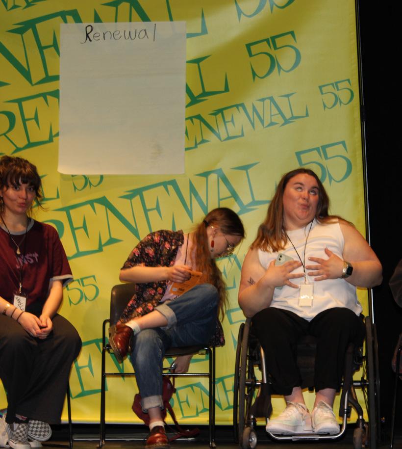 In keeping with the themes of intergenerational connection and community, Kathy Ogren’s weekly seminar, Johnston and Doing the One Wild & Precious Life, made up of current students, faculty, and alumni, held the first-ever student-facilitated plenary panel at this year’s Renewal. This year’s plenary session, held in honor of Kathryn Green’s lasting generosity and commitment to building connections between Johnston students and alumni, invited the panel’s audience into a typical week in class through a “fishbowl” style discussion of three questions: