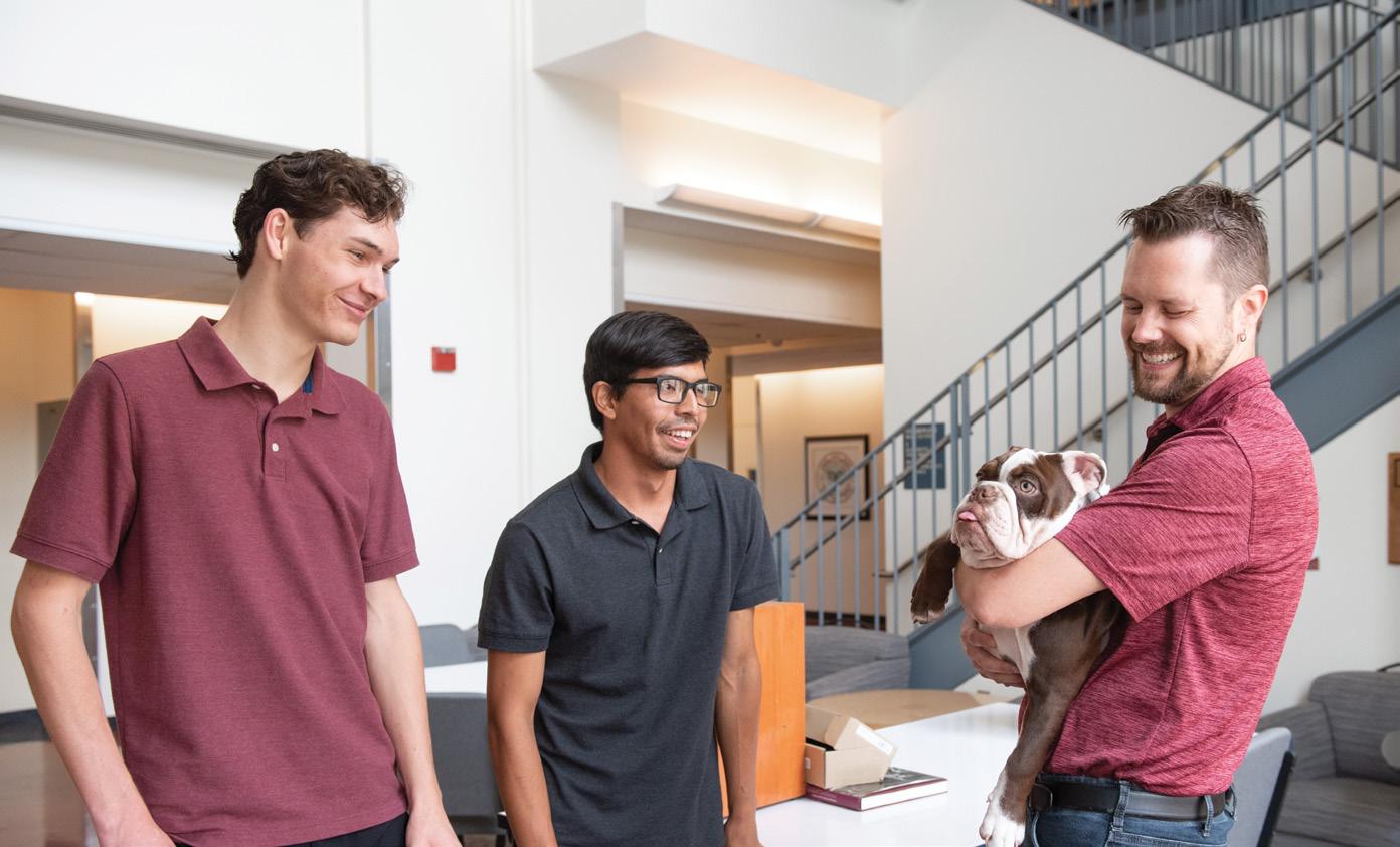 the University’s newest mascot, George Willis. Since his arrival, George has been warming hearts and bringing a smile to everyone who meets him. More than a cute face, you will find him all over campus, meeting with potential students in the Admissions office or providing comfort to anyone who needs a hug in our Counseling Center. Make sure to visit pages 30 to see him in action at his recent “Indoguaration.”